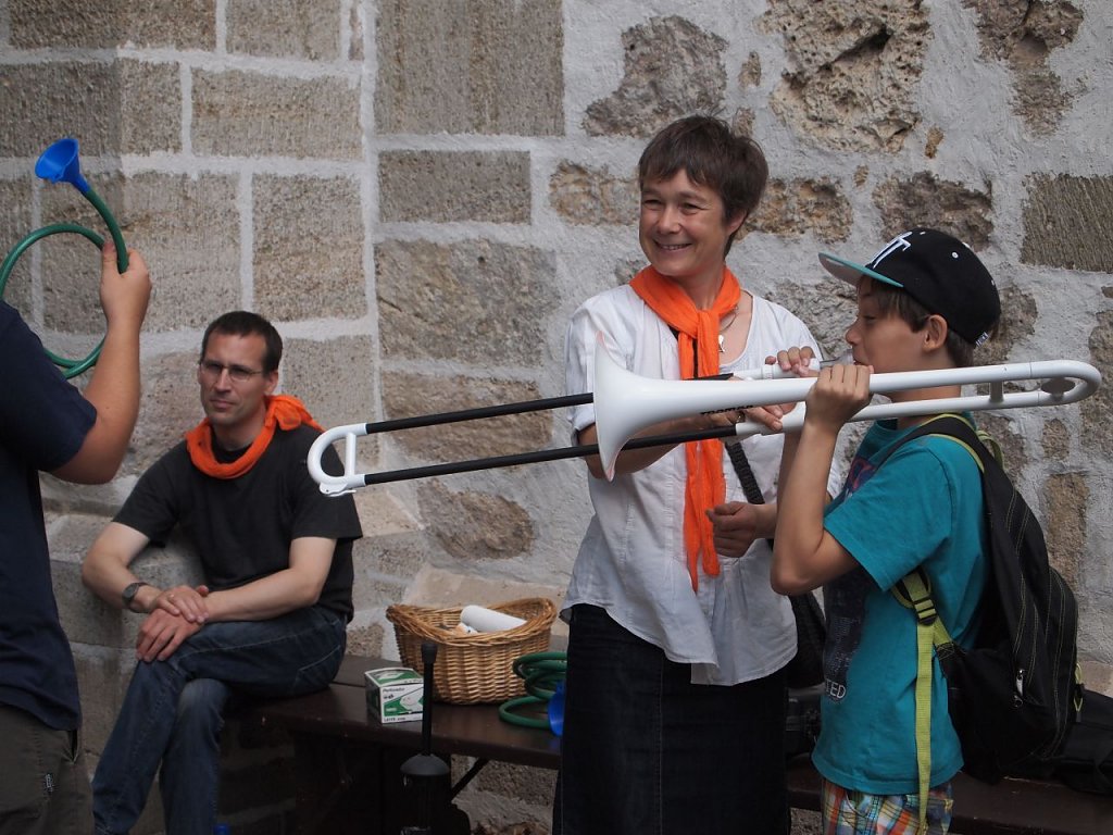 Nach diesen informativen anderthalb Stunden hieß es für die Schüler Kraft an der Obstbar vor der Blasii-Kirche tanken und auf zum Markt der Möglichkeiten rund um die Kirche. Da wurde Sumo-gerungen, sich vom Turm abgeseilt, ein Blasinstrument ausprobiert, mit dem Zirkus Zapellini balanciert, Ringe geschmiedet, Körbe geflochten, Wasserbomben geschossen und vieles, vieles mehr. 24 Angebote lockten zum Mitmachen und wurden gern angenommen.