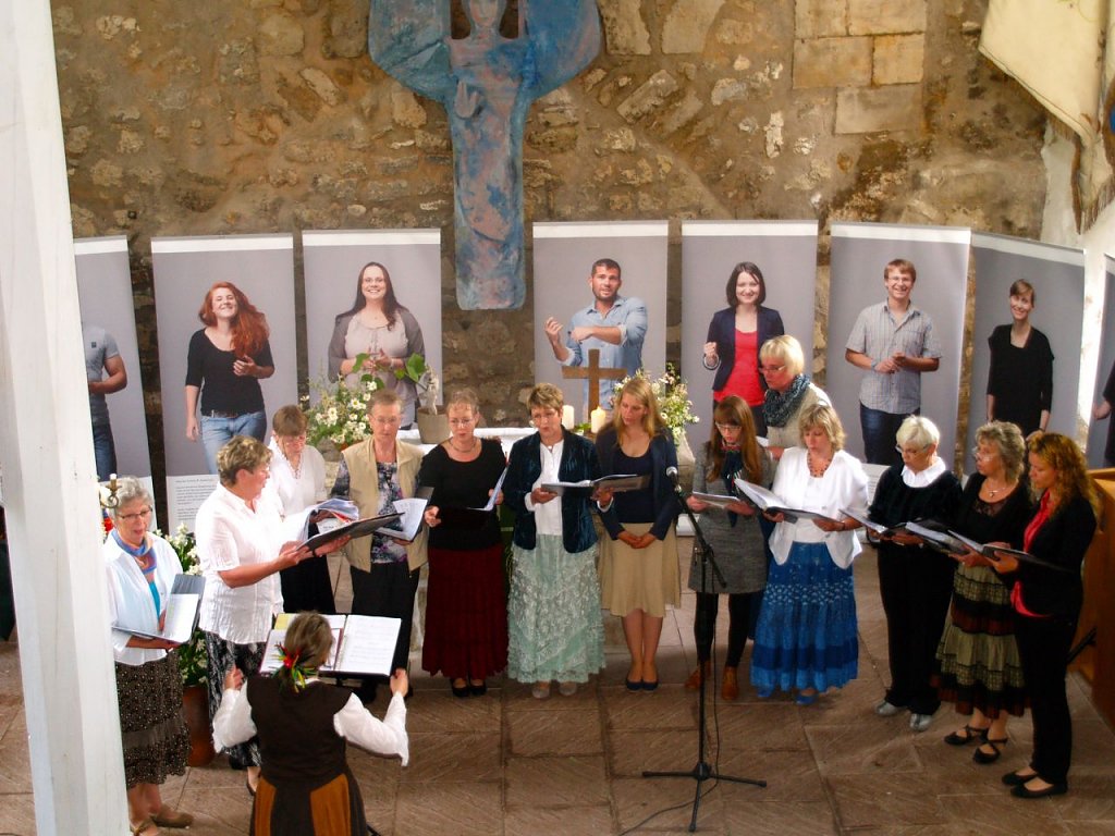 Zum diesjährigen Petrusfest bevölkerten im Rahmen der Ausstellung "Bis hier und weiter" ein Kreis junger Menschen den Altarraum, die auf Plakaten von ihrem Leben und ihrem Glauben berichteten. Eigentlich ging es in diesem Jahr generell um junge Menschen, ihre Sehnsüchte und ihren Glauben.