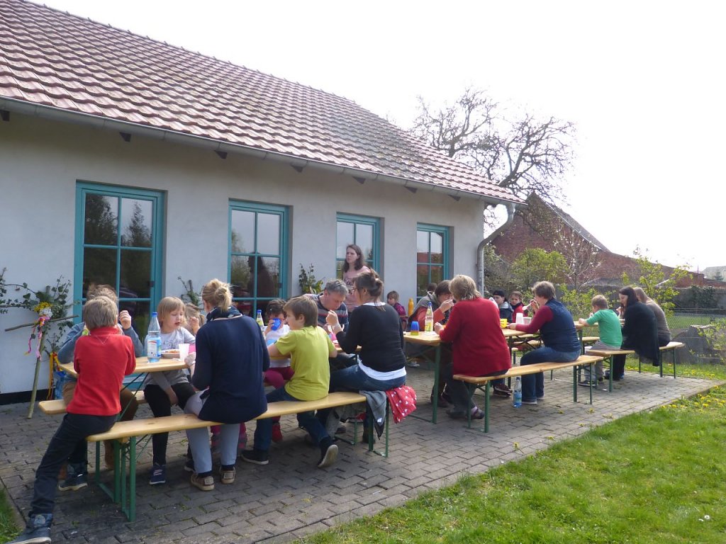 Danach konnten wir uns alle stärken an mit Liebe gekochten Nudeln mit Tomatensoße und einem zünftigen Nachtisch. Derweil genossen die Kinder den Kirchgarten, der besonders gut zu Versteck-spielen einlädt.