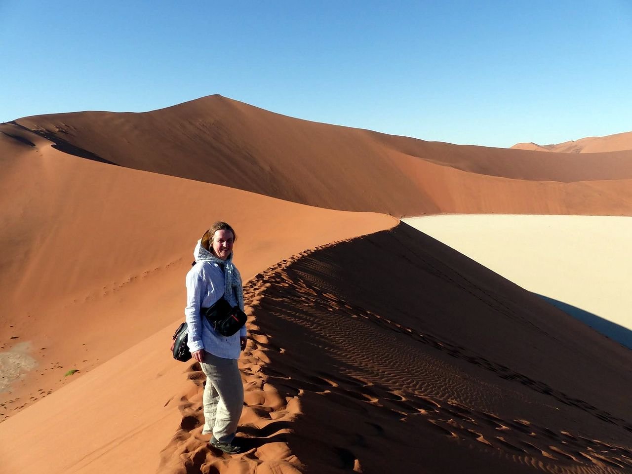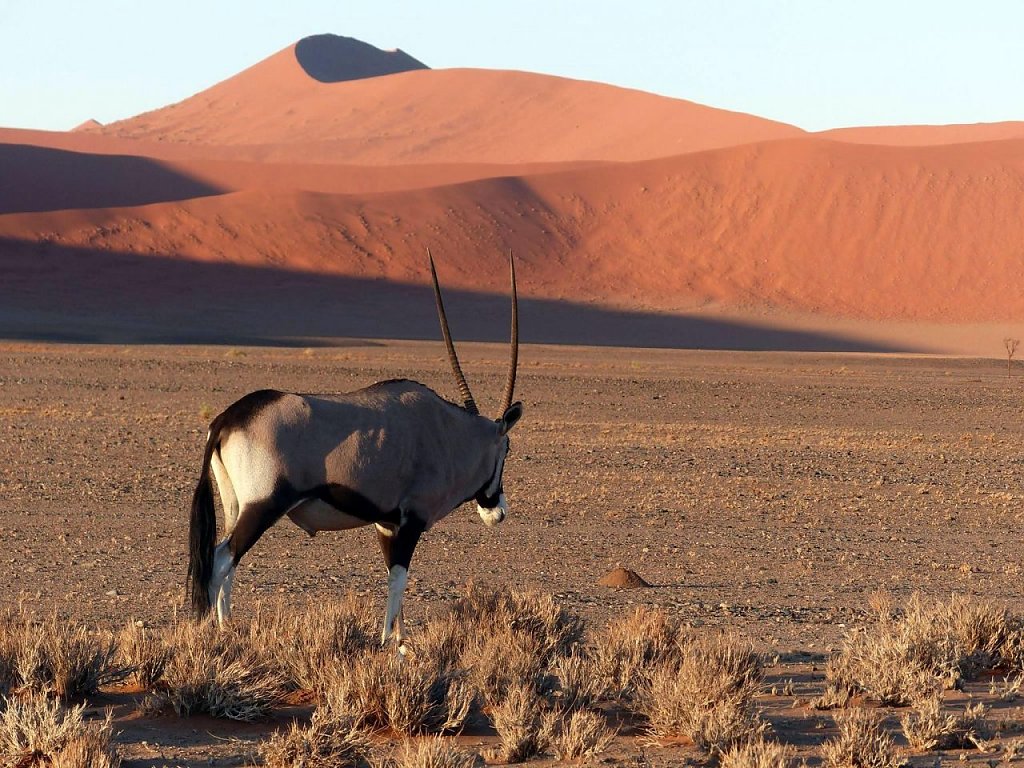 Unglaublich, wie vielfältig Wüstenlandschaften sind. Seit 5 Uhr reist unsere kleine Reisegruppe durch den Südwesten Namibias, um die Landschaft zu erleben. Im Namib-Nationalpark erlebten wir den Sonnenaufgang, fuhren in die Sossuvlei Desert, die älteste Wüste der Welt und erstiegen eine hohe Düne. Nach zwei Stunden Wanderung fuhren wir gen Norden nach Swakopmund. Dabei querten wir Gras bewachsene Wüsten, Steinwüsten Flusstäler und flache Sandwüsten. Trotzdem war überall Leben zu entdecken: