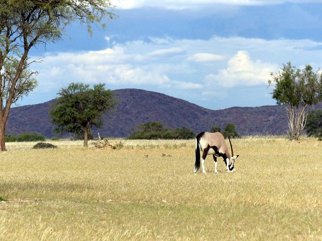 Oryx (Steinböcke), Springböcke, Zebras und Strauße, Geckos, Schlangen und Perlhühner (auch verwilderte Pferde) begeisterten uns. Das Thema Wüste beschäftigte uns auch zur Andacht. Die Regenzeit liegt erst einige Monate zurück, so gibt es noch recht viel Grün und sogar Blumen sind in der trocken Weite zu finden, Flusstäler sind noch nicht überall ausgetrocknet.