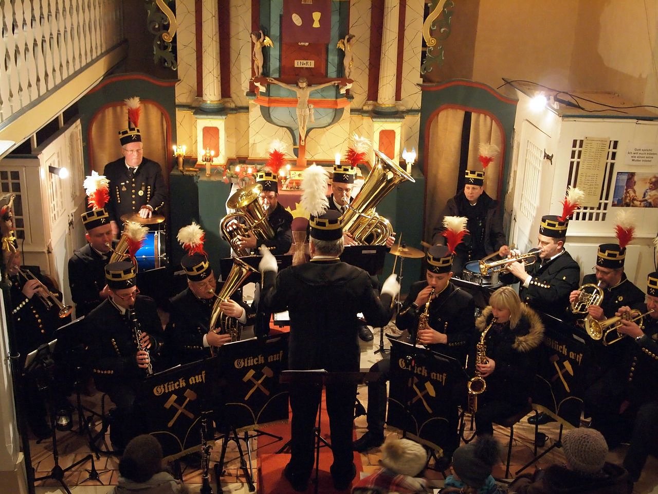Bergmannsuniformen mit schönen traditionellen Weihnachtsliedern zu hören sein.