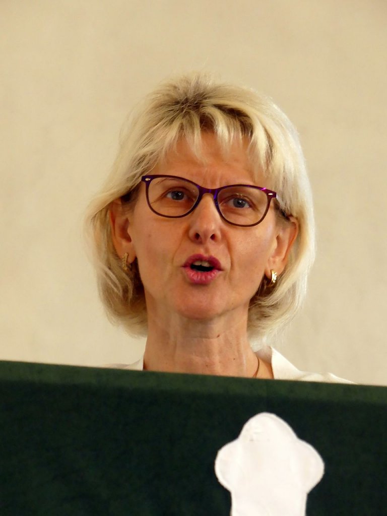 Auch die Bürgermeisterin der Gemeinde Sonnenstein, Margit Ertmer, ließ es sich nicht nehmen ein Grußwort zu überbringen und einen Scheck zu überreichen. Die Gemeinde hatte ihr einen besonderen Platz im Altarraum unter den Mitgliedern des Gemeindekirchenrates reserviert.