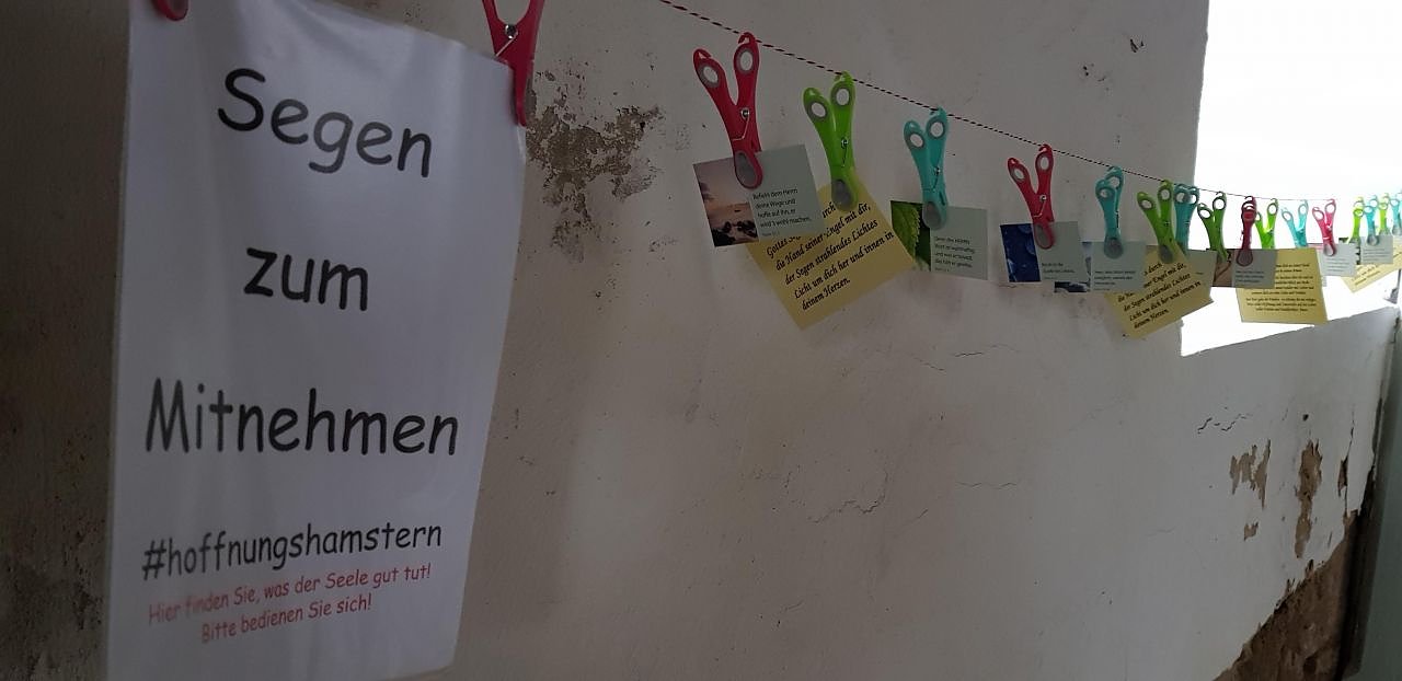Nehmen Sie sich gern ein Segenskärtchen mit. (Sie liegen derzeit verstärkt in vielen offenen Kirchen aus)