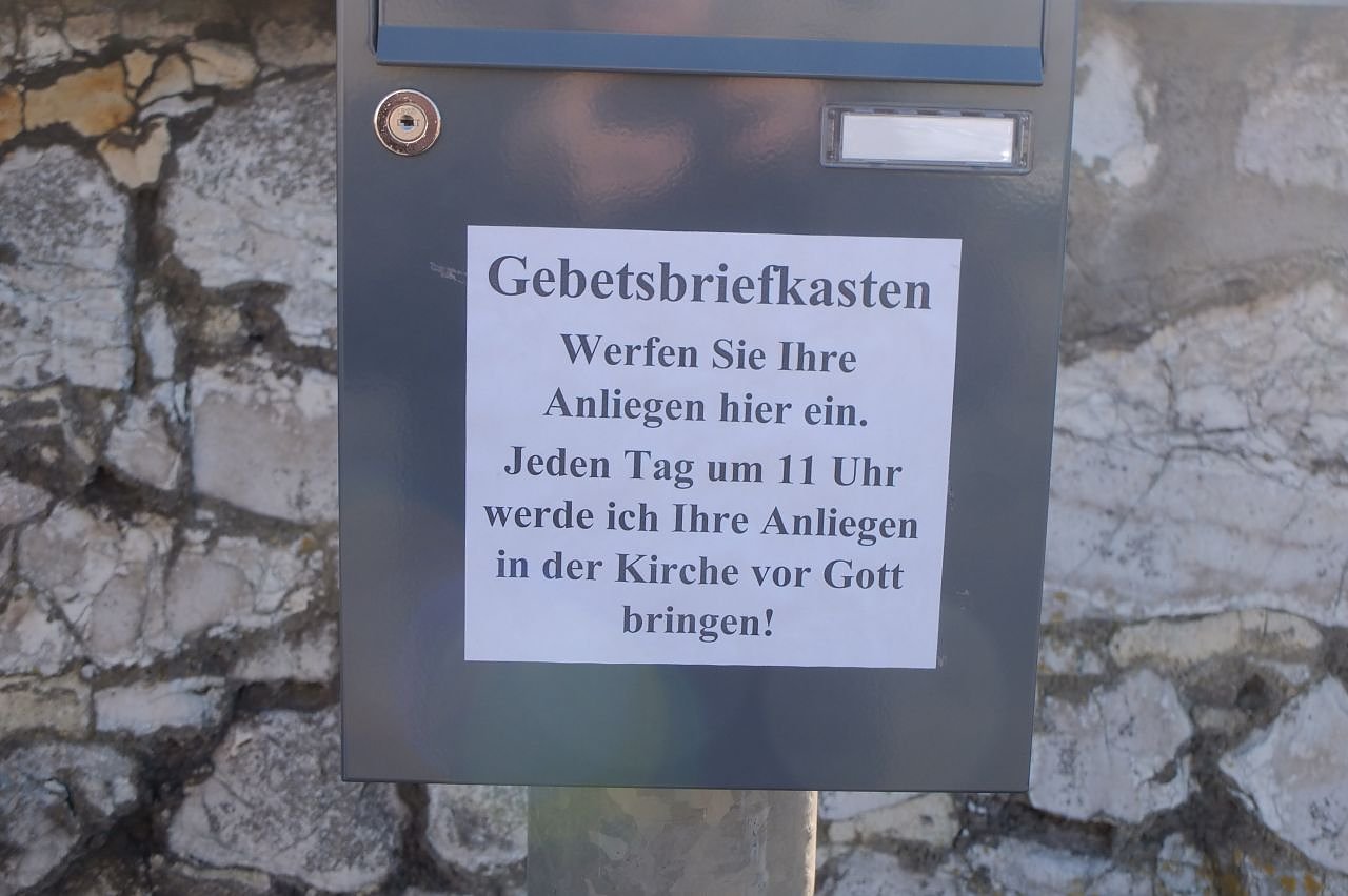 Niedersachswerfen gibt es jetzt einen Gebetskasten in die Sie Ihre Anliegen einwerfen können. Pfarrer Dr. Bodo Seidel leert ihn täglich und bringt die Anliegen um 11 Uhr in der Kirche vor Gott.