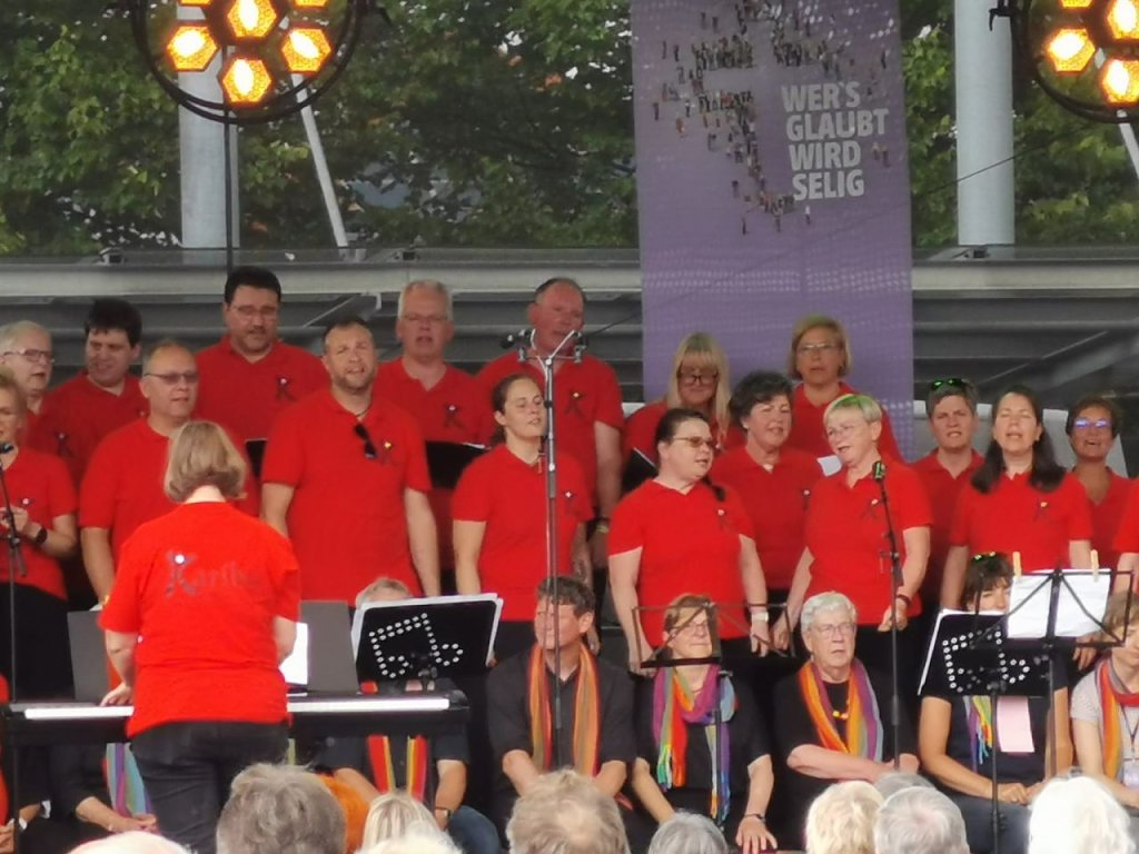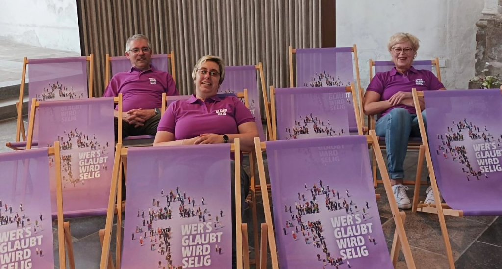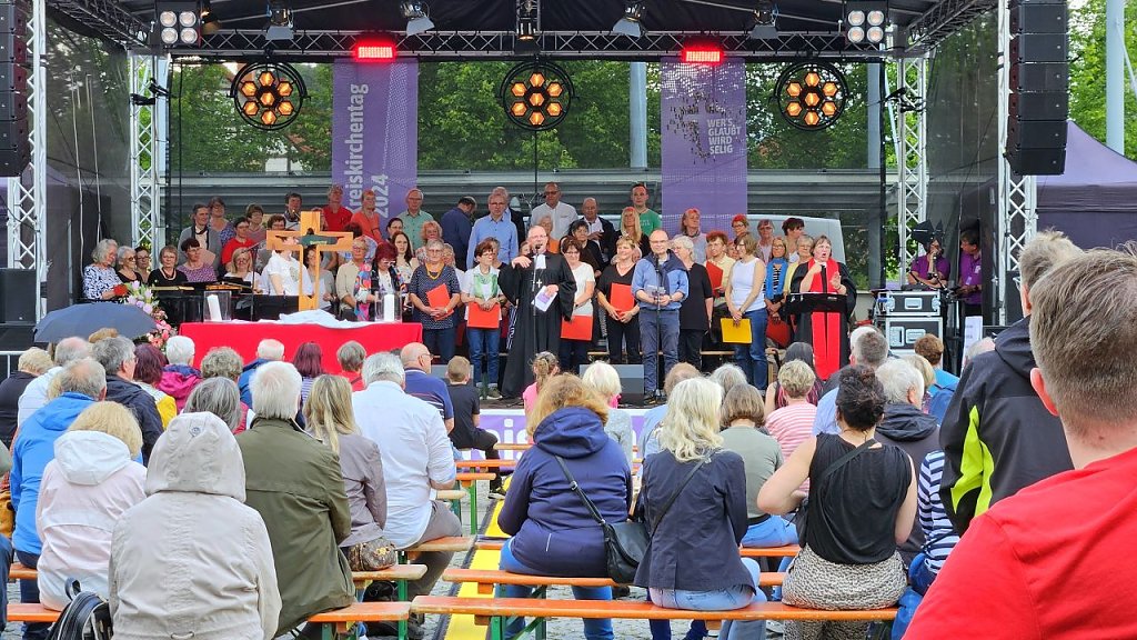 Beim Kreiskirchentag ging es nicht nur um den Glauben – hier wurde Glauben zur spannenden Reise zur Seligkeit unter dem Motto: Wer’s glaubt, wird selig.| 10.00 Uhr | Eröffnung des Kirchentages mit fröhlichem Warm-up | auf der Bühne |