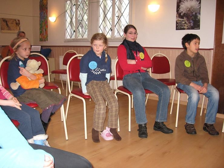 Am 30. Januar trafen sich 14 Mädchen und Jungen zum 1. Kinderbibeltag in Neustadt. Unter dem Motto "Auf Schwingen herab: Gottes neue Stadt" haben sie Geschichten gelauscht, gebastelt und dabei selbst ihren Vorstellungen von der neuen Stadt Ausdruck gegeben. Der Glanz, von dem in der Offenbarung des Johannes die Rede ist, hat sich dabei in Form von Glintzersternen auch auf die Köpfe der Mädels übertragen. "Wenn man vom Himmel redet, fängt man eben auch zu leuchten an."