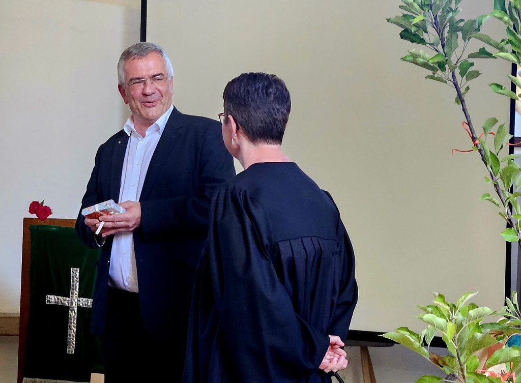 "Ich staune, wenn da 33 Jahre treuer und fröhlicher Dienst im Rückblick erscheinen", freut sich Superintendent Andreas Schwarze über diese Kontinuität und dankt auch für all das, was sich in keinen Dienstplan fassen lässt.