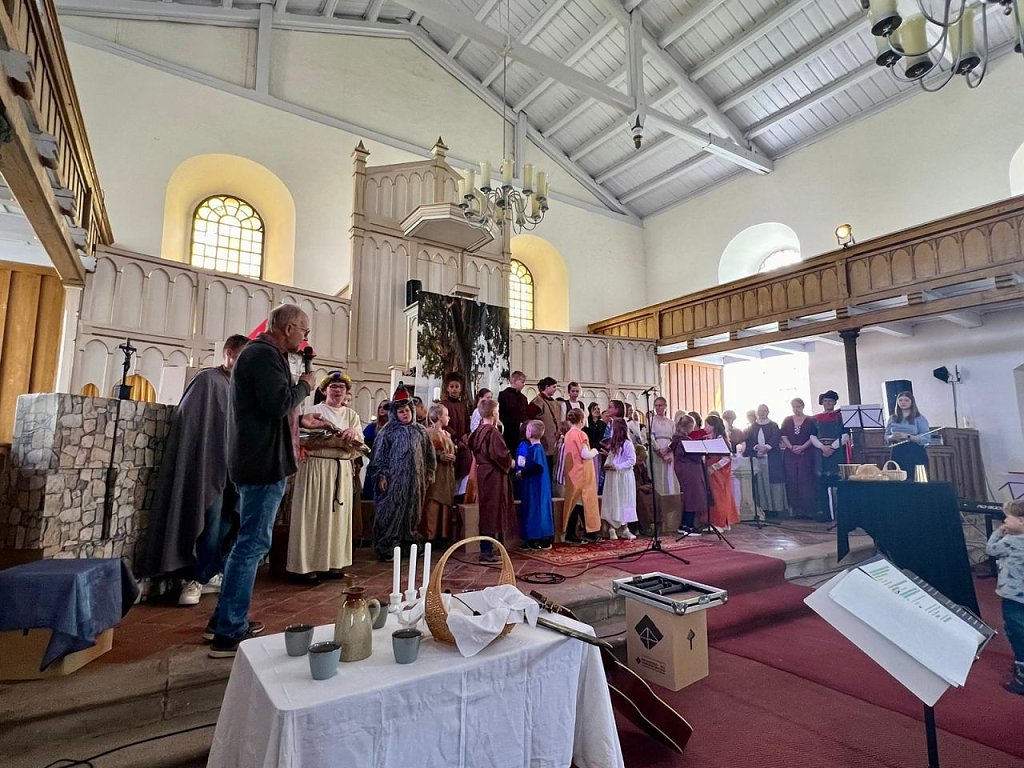 Das Publikum in Mackenrode, Kirchgemeinde und Familien der Mitwirkenden, war sehr aufmerksam, spendete häufig Szenenapplaus und erklatschte noch eine Zugabe. Die Kirchgemeinde machte aus dem Musical mit einem riesigen Kuchenbuffet und einem kleinen Markt ein kleines Gemeindefest.