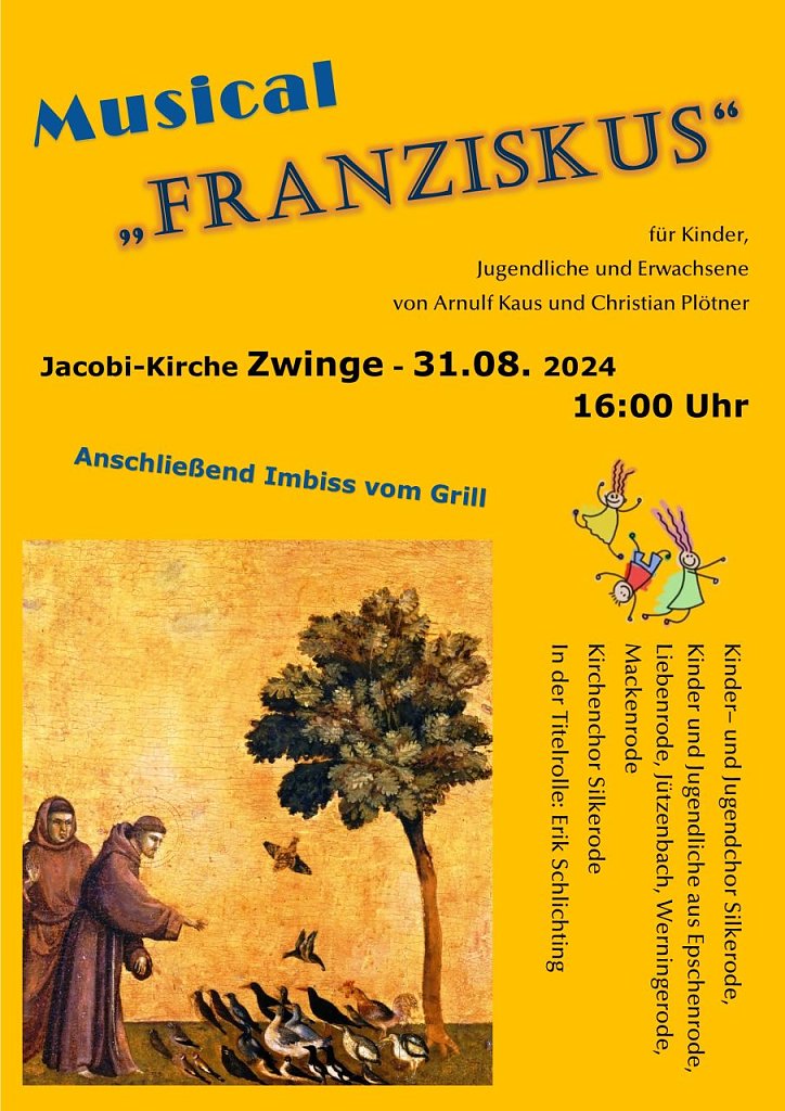 Das musikalische Rückgrat des Projektes ist unstrittig Silkerode, in dem kleinen Eichsfelddorf gibt es einen ordentlichen und engagierten Kirchenchor, und es gibt dort die wohl größte Kurrende, oder gern auch Kinderchor benannt, des ganzen Kirchenkreises. Das Musical von Kaus & Plötner richtet sich ausdrücklich an das Zusammenspiel von Jung und Alt, denn es gibt Stücke, die ganz klar in der Gestalt von Kinderliedern herkommen, und es gibt auch vierstimmige Chorsätze und ergreifende Solonummern. Hier nun muss man als Zentrum des Sologesangs die beiden Dörfer Epschenrode und Werningerode benennen, der Hauptdarsteller in der Person des Franziskus, Erik Schlichting, kommt wie sein Bruder auch aus Werningerode.
