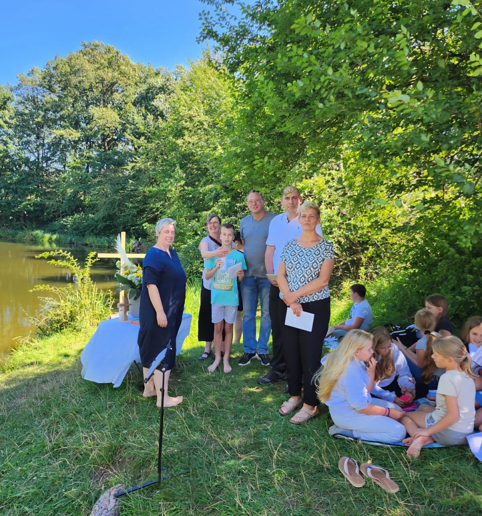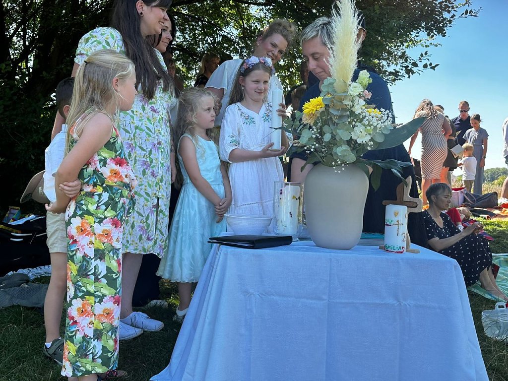 Es war ein einzigartiger Moment, der die Herzen aller Anwesenden berührte – ein wundervolles Erlebnis, nicht nur für die Täuflinge, sondern auch für ihre Familien, Paten und alle Teilnehmenden. Die liebevolle Vorbereitung durch die Tauffamilien, von der Blumendekoration bis hin zum gemeinsamen Picknick mit Kaffee und Kuchen, trug zur besonderen Atmosphäre bei.
