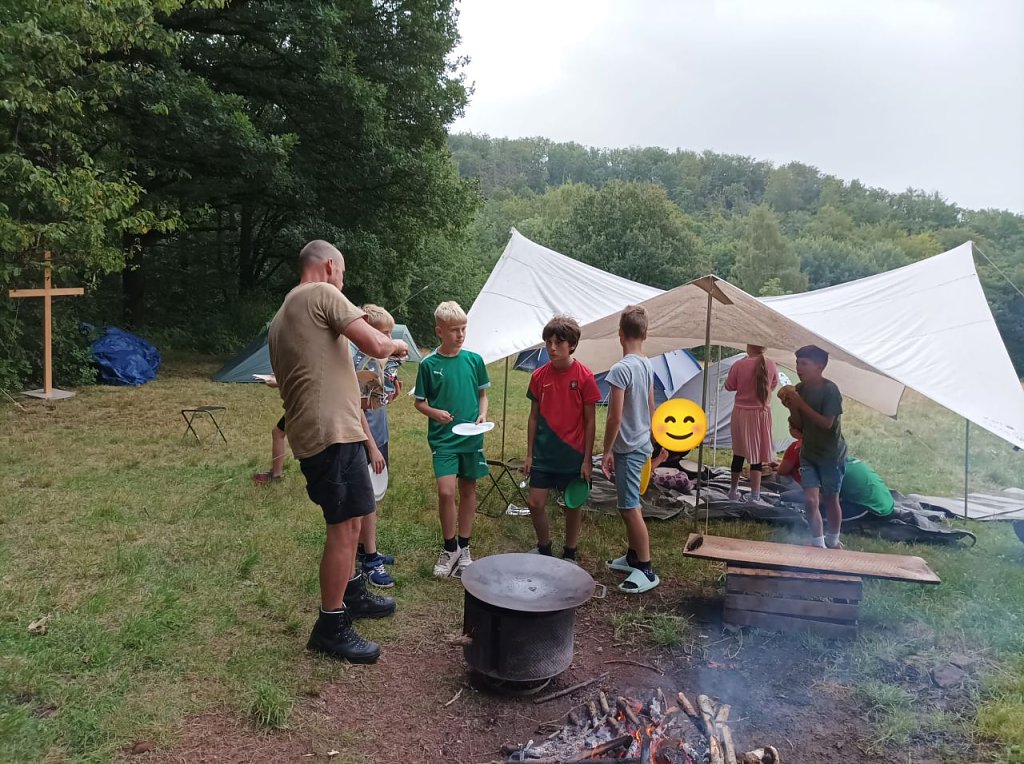 (re) Dieses Wochenende erlebten wir zwei wunderbare Tage im Teenie-Zeltcamp beim Kuhlager in der Nähe der Sägemühle Hermannsacker. Am Freitag ging es los, und die Teilnehmerinnen und Teilnehmer machten sich zügig daran, das Lager aufzubauen, denn Regen war angekündigt. Dank großartiger Teamarbeit standen die Zelte schnell, das Küchenlager wurde eingerichtet, und Holz für das Lagerfeuer gesammelt.