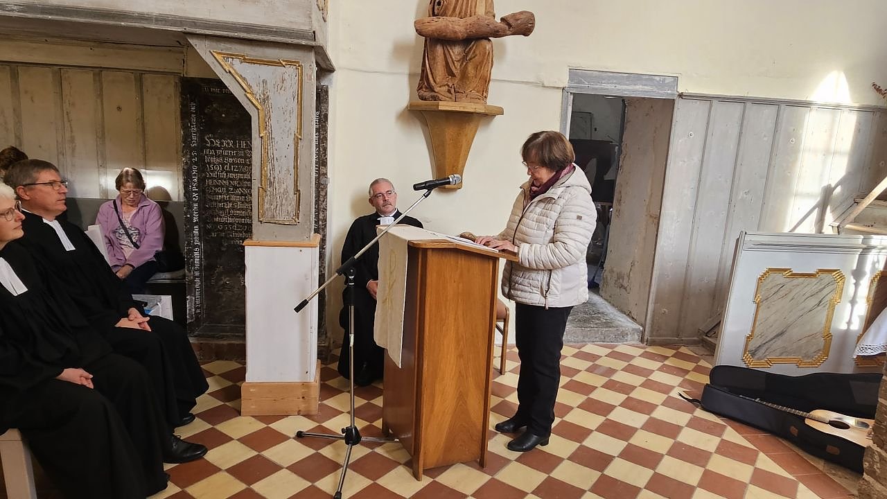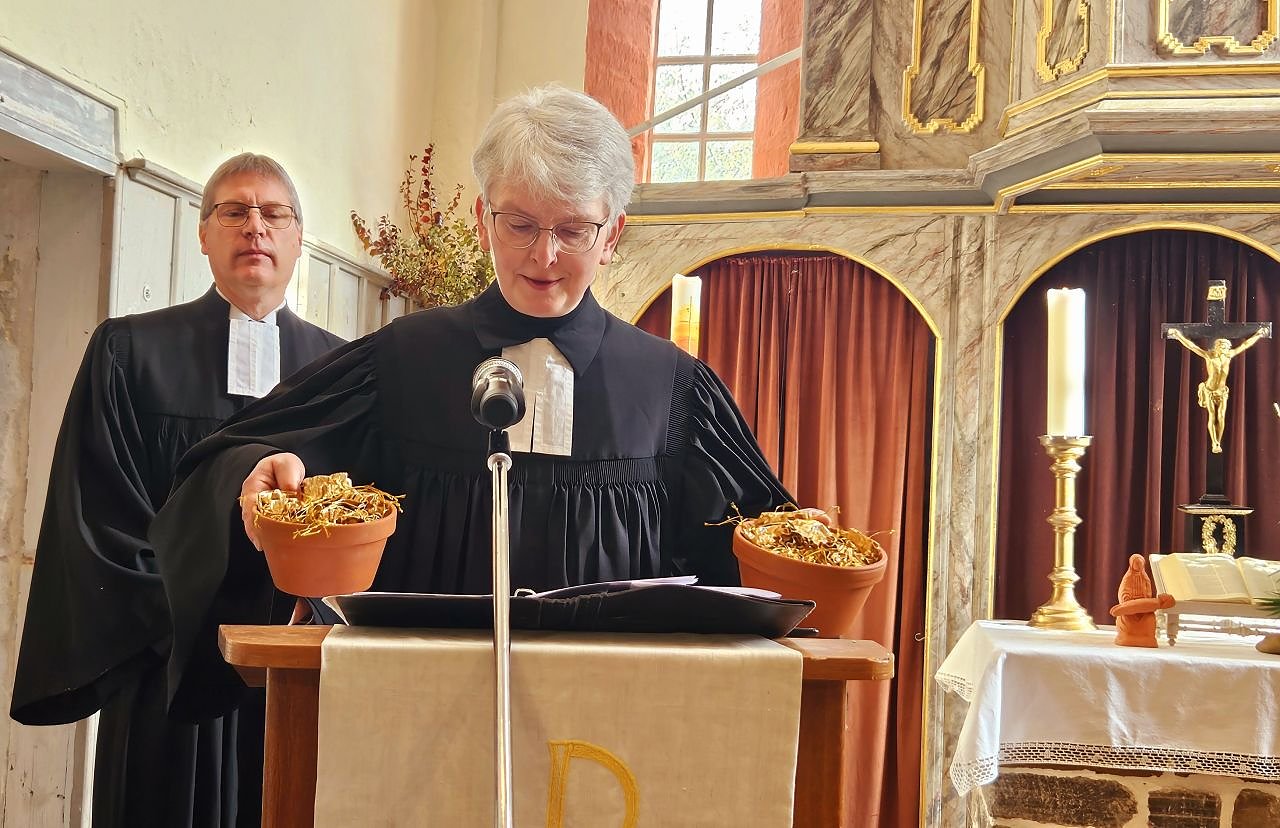 Der Blick zurück und Dank standen im Mittelpunkt des Tages - Worte und Geschenke, die an die gemeinsame Zeit und das Erreichte erinnerten, füllten das Kirchenschiff. Annette Lehmann und die Vorsitzenden der Gemeindekirchenräte Uthleben und Windehausen, Dagmar Ullrich und Marga Echtermeyer gingen dazu ans Mikrofon. Da war von großen Baumaßnahmen die Rede, aber auch von Gottesdiensten, kirchlichen Kreisen und persönlichen Gesprächen - Spuren, die bleiben, Beziehungen, die aufgebaut wurden.