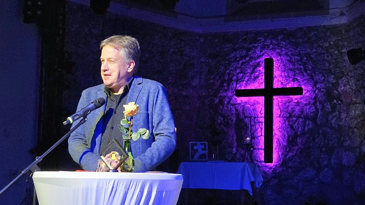Wer die Kirche im Dorf lassen wolle, müsse ihre Türen weit öffnen, legt er den Gemeinden ans Herz. Unsere Kirchen sind keine Museen, sie können – nein, sie sind lebendige Orte der Verkündigung!, schließt er seine Würdigung und überreicht gemeinsam mit Superintendent Andreas Schwarze den mit 1.500 Euro dotierten Justus-Jonas-Preis.