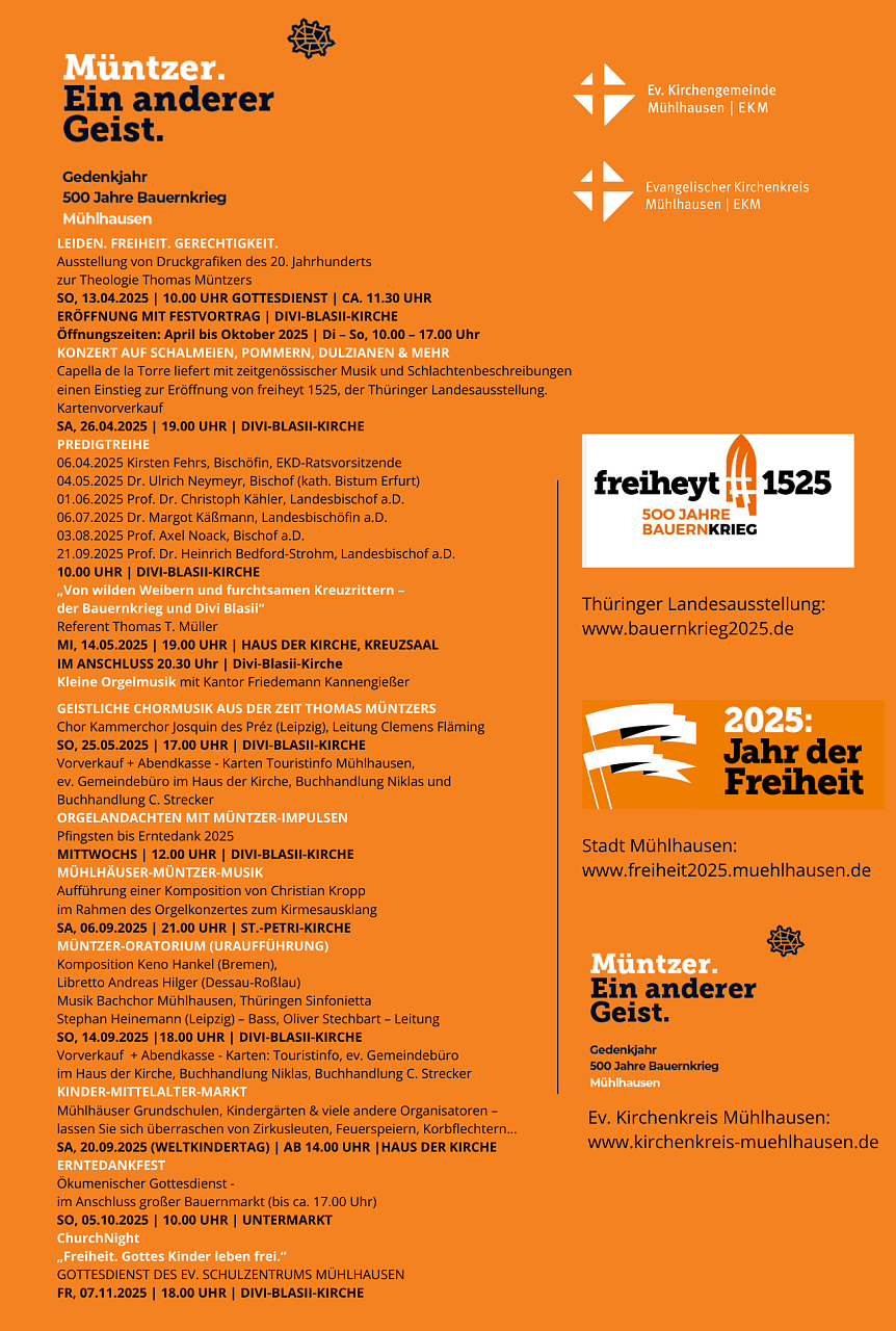 Entdecken Sie die Veranstaltungen in unserem Nachbarkirchenkreis Mühlhausen im Müntzerjahr 2025 oder 500 Jahre Bauernkrieg.