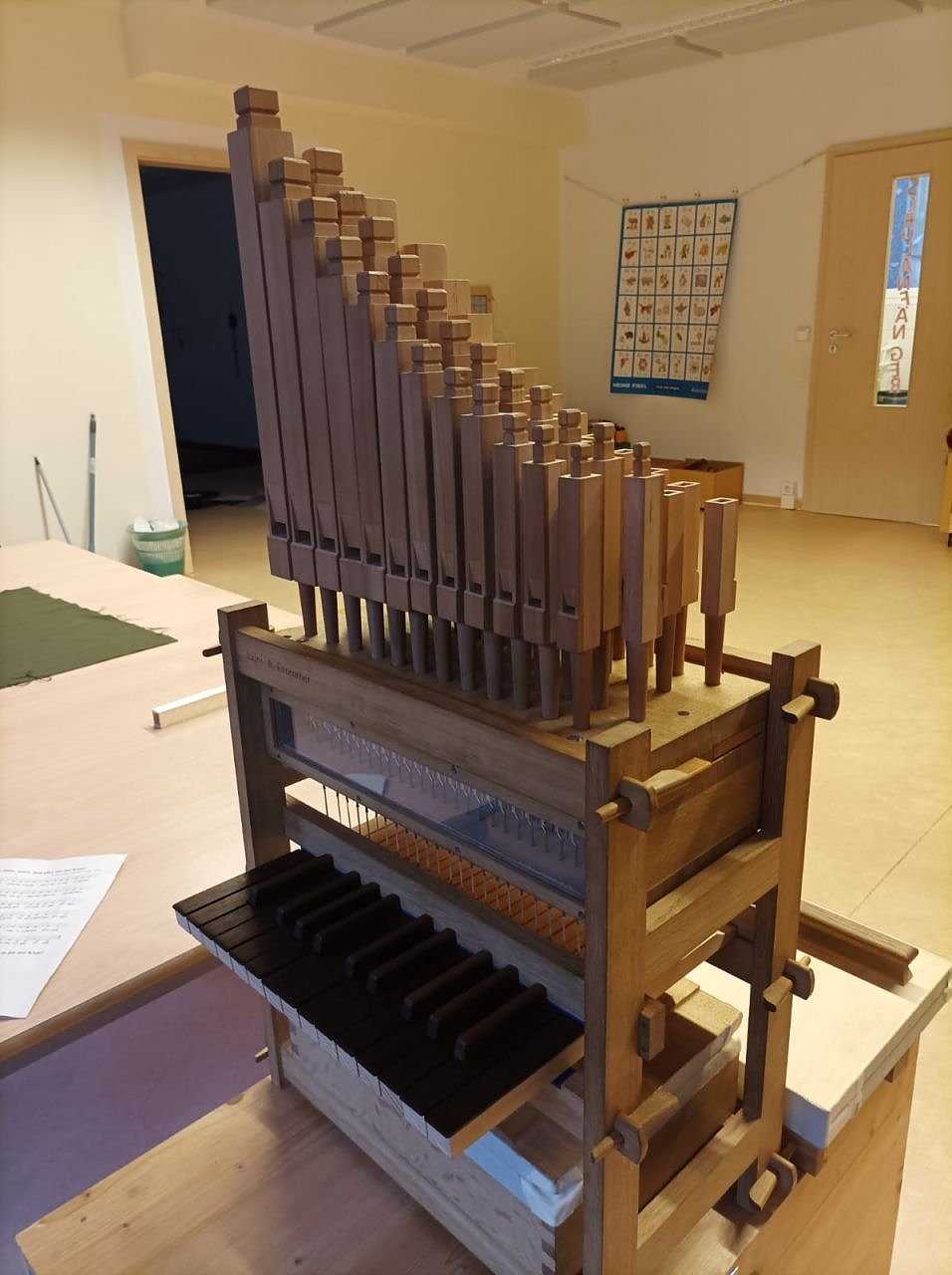 Bereits die Ankunft mit der großen Kiste sorgte für Spannung. "Kann in so einer Kiste wirklich eine Orgel sein?", fragten sich die Kinder, als sie zunächst Bilder von beeindruckenden Orgeln aus aller Welt betrachteten. Die Neugier wuchs, und mit einem gemeinsamen Lied Eene, meene, miste - holt alles aus der Kiste! wurde der Aufbau eingeläutet.
