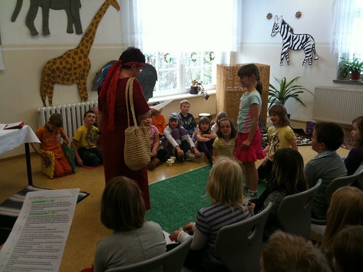 Am Dienstag, den 23.3. führten die Kinder der Theaterwerkstatt das Musical "Louise geht ihren Weg" im voll besetzten Speisesaal der Grundschule Weißenborn auf. Anläßlich des Weltgebetstages hatte die Gemeindepädagogin Ines Delert (Leiterin der AG) dieses Musical über Louise aus Kamerun mit den Kindern der Theaterwerkstatt eingeübt. Schon vorher wurde es in zwei sehr gut besuchten Familiengottesdiensten in Stöckey und Zwinge präsentiert.