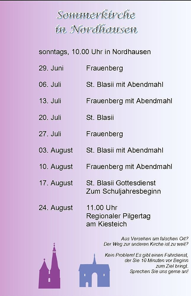 (re) immer sonntags, bis auf 1x immer um 10.00 Uhr in Nordhausen - nur die Orte variieren: