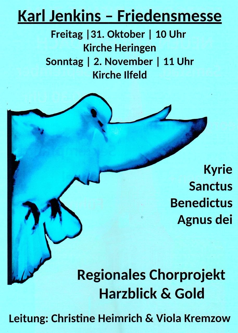 Mit rund 50 Sängerinnen und Sängern haben sich die beiden Kirchenmusikerinnen Viola Kremzow (Heringen) und Christine Heimrich (Ilfeld) zusammen getan, um Teile aus der Friedensmesse The armed man von Karl Jenkins aufzuführen. Dazu schreibt Viola Kremzow: