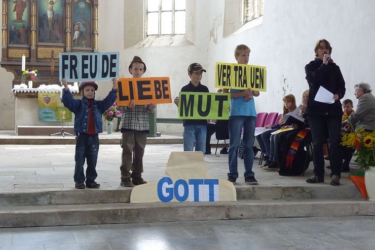Unter einem Hut - allzeit gut behütet! Unter diesem Motto feierten heute die Schulkinder aus dem Pfarrbereich Ellrich Gottesdienst zum Schulanfang. Zu dem geplanten 90 minütigen Vortrag über die Geschichte der Kopfbedeckungen kam es leider nicht, denn immer wieder tauchten große und kleine Kinder auf, deren Hüte etwas zu erzählen hatten. Zum Schluss versammelten sich alle unter dem einen Hut, der immer da ist: Gottes behütende Hände. Allen Schülerinnen und Schülern wurde der Segen Gottes zugesprochen und sie wurden mit guten Wünschen auf ihren weiteren Weg geschickt.