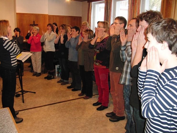 In Ilfeld haben im Rahmen des Gospel Projekts von Freitag bis Sonntag gut 40 Sängerinnen und Sänger gemeinsam begeistert und konzentriert gesungen, geschnipst, geklatscht uvm. Nach zwei instensiven Probentagen bildete den ersten Höhepunkt ein Gospelgottesdienst am Sonntag, 9. Januar, in der gut gefüllten Sankt Georg-Marien Kirche. Die Gemeinde ließ sich mitreißen von schwungvollen und swingenden Klängen und belohnte den Chor mit viel Applaus und standing ovations.