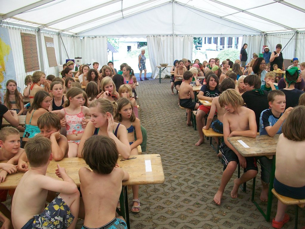 Kinder kegeln über geseifte Bahnen, transportieren H2O in verschiedenen Aggregatszuständen und Behältnissen, tanzen Samba im Seifenschaum, fischen süße Tierchen aus dem Nass, attackieren Wasser in bunten Ballons mit Blasrohrpfeilen, seifen sich von Kopf bis Fuß ein, um dann mit vollem Einsatz die Wasserbomben über die Schnur zu befördern. Wir brauchen nicht zu erwähnen, dass dabei kein Auge trocken geblieben ist und alle vor Sauberkeit und Seifenduft strahlen.