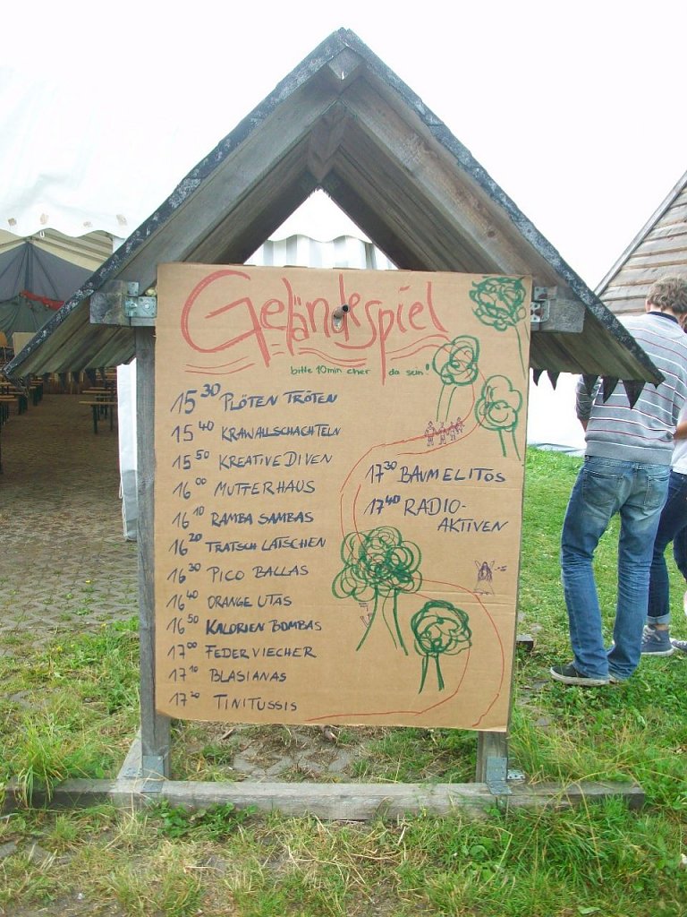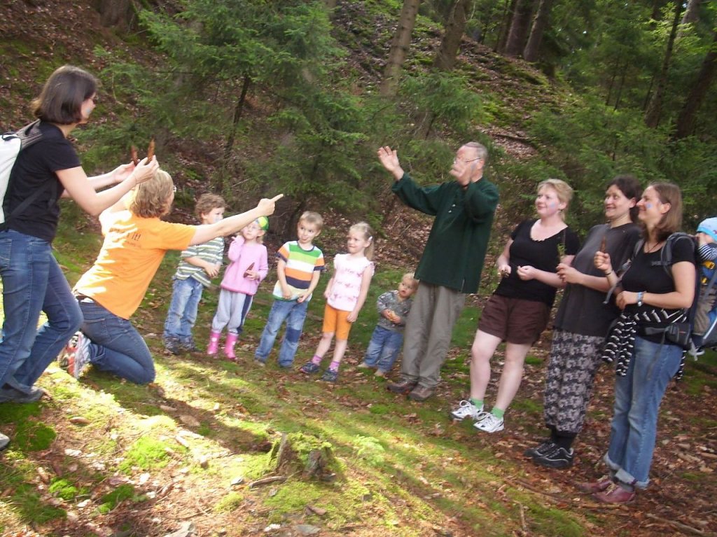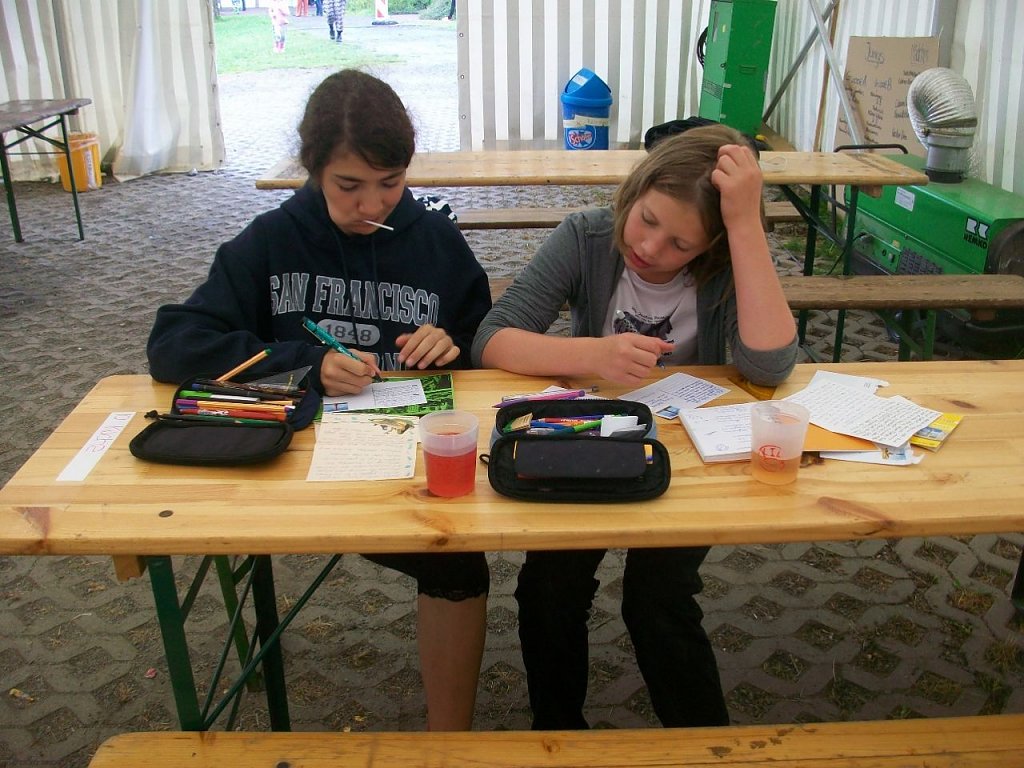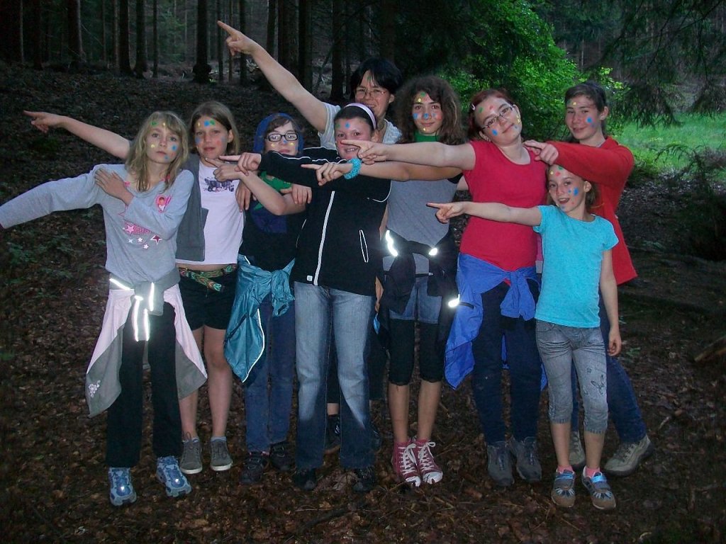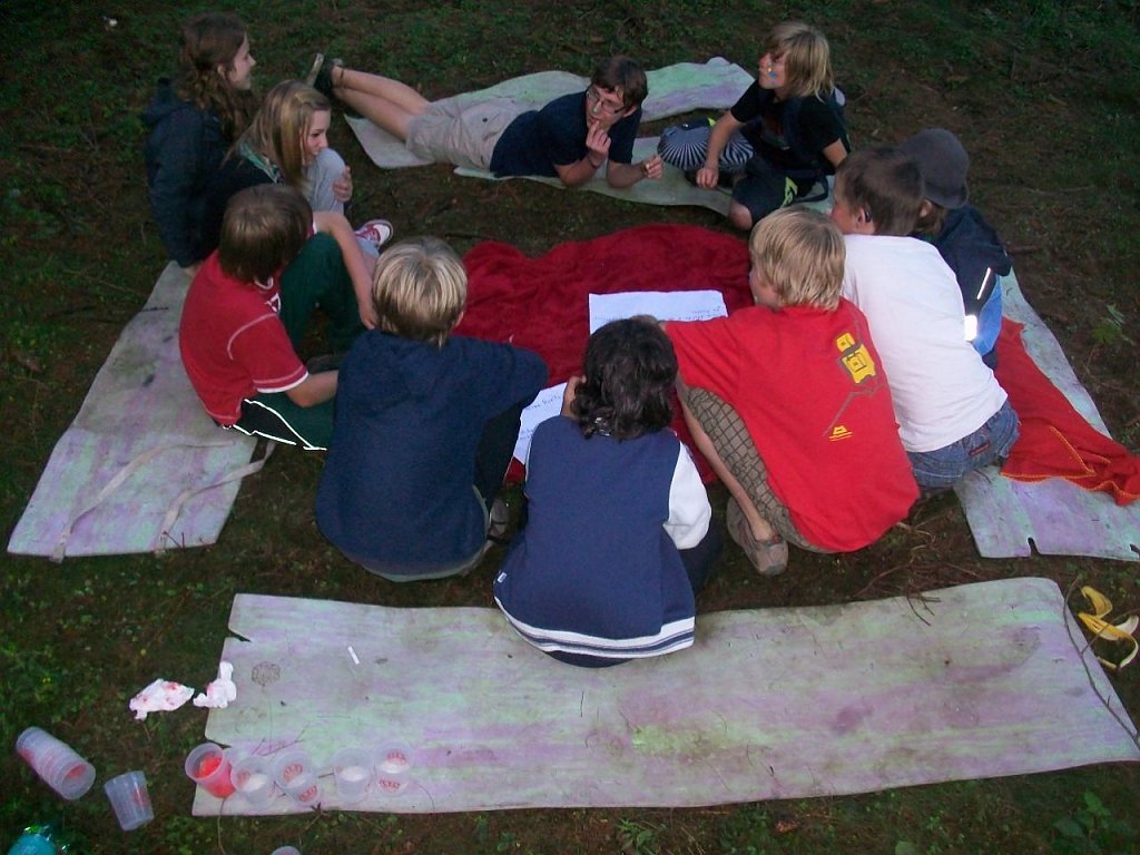 Zeltgruppe trat einzeln an den Start und an 14 verschiedenen Stationen ging es durch Regenwälder, Dschungelgebiete und natürlich über den Amazonas. Hütten wurden gebaut, Gold gesucht, im Busch getrommelt und kunstvolle Gebilde aus Müll entstanden. Gefahren lauerten überall im Wald; ob als Waldmonster, Polizist oder als Gummibärchen – Junkie – gemeinsam widerstand man Allen! Nach Anstrengung und dem einen oder anderen Schrecken taten die gute Fee und die Lehrerin Frau Rosario den Kindern richtig gut und verteilten süße Stärkungen und heiß ersehnte Zusatzpunkte.