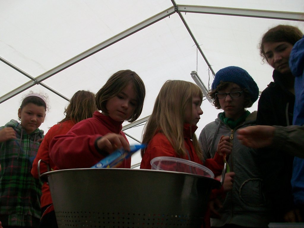 Da Morgenandacht bei Regen unter freiem Himmel recht unangenehm sein kann, nutzten wir heute den Luxus der Radiosendung – Andacht via Lautsprecher live und direkt in jedes einzelne Zelt. Toll!
