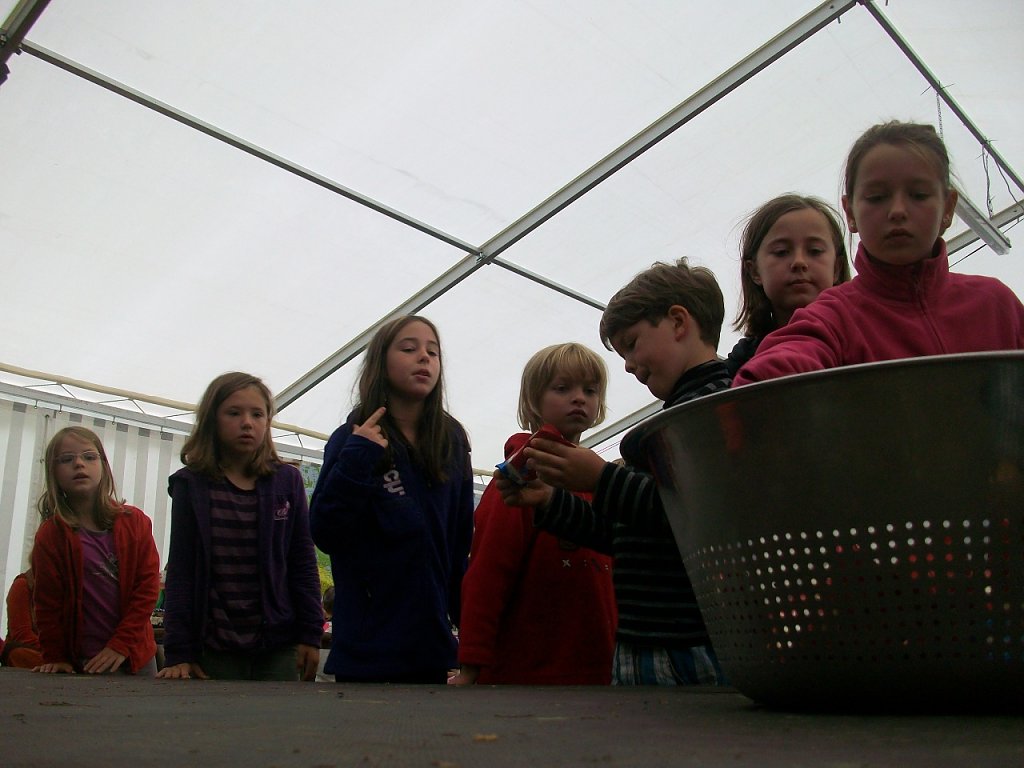 Berge versetzten die Kinder auch während der Bibelarbeit, im Gespräch oder bei ihrem eigenem Tun. Entweder durch Abtragen aufgehäufter Berge – oder dem Tragen der Hüpfburg plus Mitarbeiter erlebten sie ganz praktisch: Kleine Kraft kann Großes schaffen. Großes bedeutet für viele Kinder auch der alljährliche Segnungsabend. Von Wiederholungscampern wird er schon sehr erwartet und andere sind sehr gespannt.