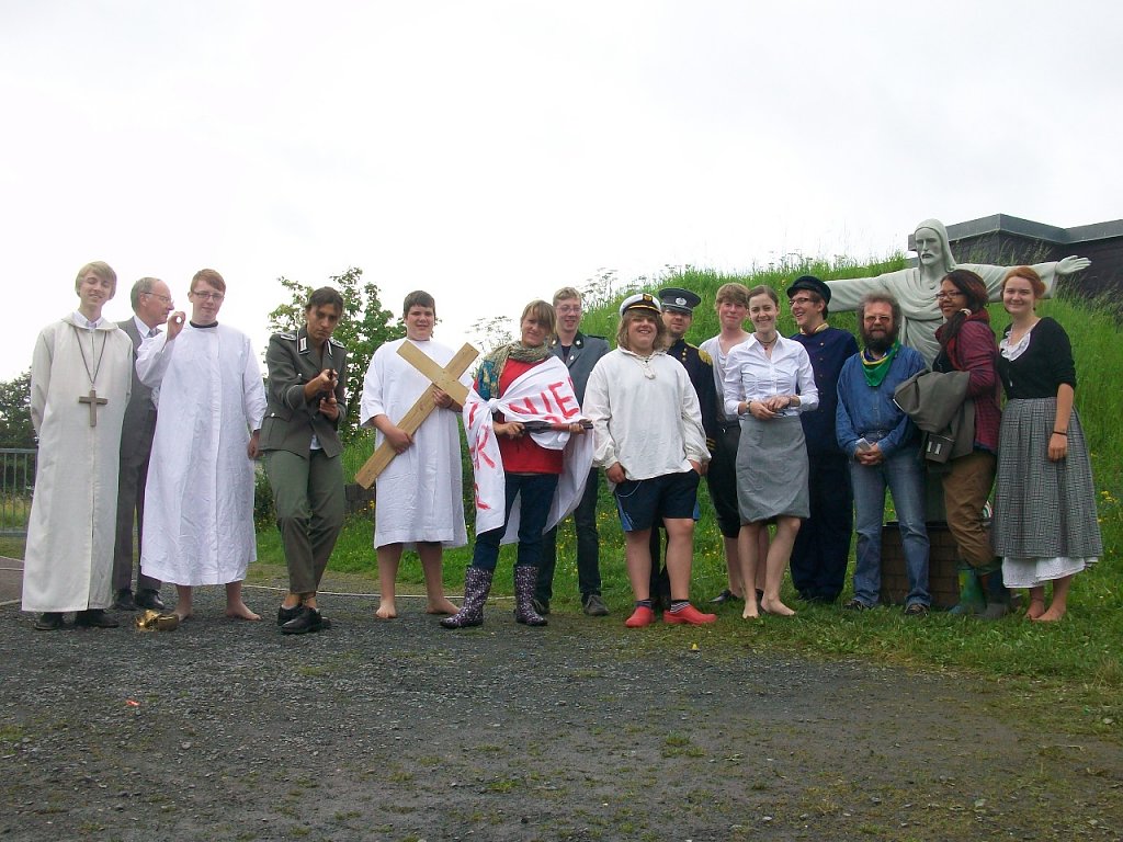 Im Theaterstück erlebten wir heute sehr eindrücklich, wie Dom Helder Camara mit großem Vertrauen und Zuversicht auf Jesus – seinem Herrn, Großes erreichte - Berge versetzte. Fischer am Amazonas müssen erleben, wie Abwässer der nahegelegenen Gummifabriken den Fluss verseuchen. Ein Fischsterben setzt ein, ihre Existenz ist bedroht. Unterstützung finden sie nirgends. Aber Dom Helder erreicht mit einer Prozession Verhandlungsbereitschaft beim Fabrikbesitzer. Erleichterung bei den Fischern, aber was hält die Regierung davon?