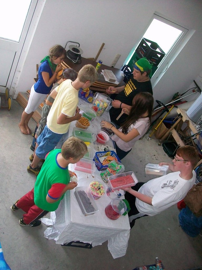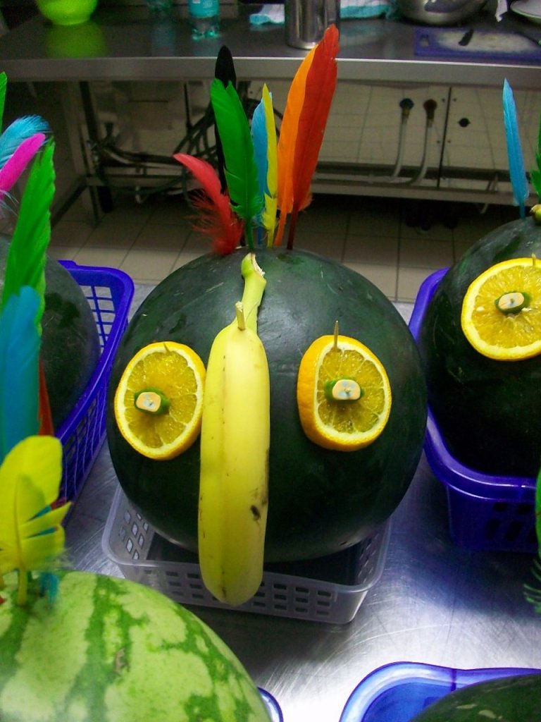 Dann rückte er näher, der Abschlussabend, der in diesem Jahr im Regenwald stattfand. König Krokoschinski II (der große Krokodilkönig) lud seine Untertanen zum Spiel. Es gab Wettspiele, Geschicklichkeitsaufgaben, Knobelspiele und viele gefräßige Krokodile, welche im Amazonas schwammen und nicht zögerten, das eine oder andere Kind zu fressen. Begeistert von seinen Untertanen verteilte der König zum Abschluss Melonenpapageien, ein toller, leckerer und auch gesunder Spaß.