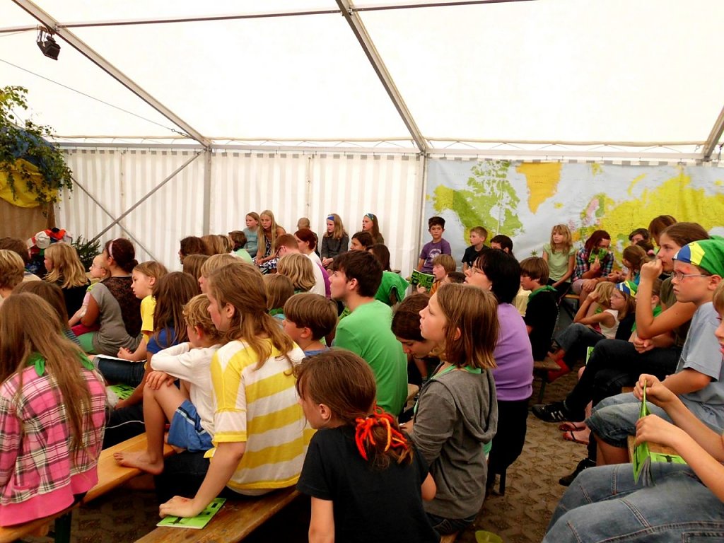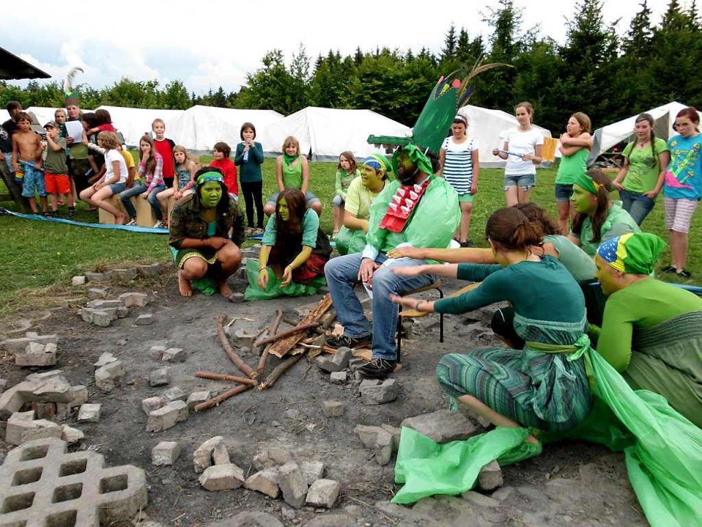Wochenende, Campende: Der letzte ganze Tag. Strahlender Himmel grüßt uns und wir starten mit voller Kraft. Nirgends schmeckt das Frühstück so gut, wie im großen Zelt gemeinsam mit 90 Kindern. Munter, fröhlich, laut, krabbelig: Manch einer kann es sich gar nicht mehr anders vorstellen und wir genießen die letzten Mahlzeiten.