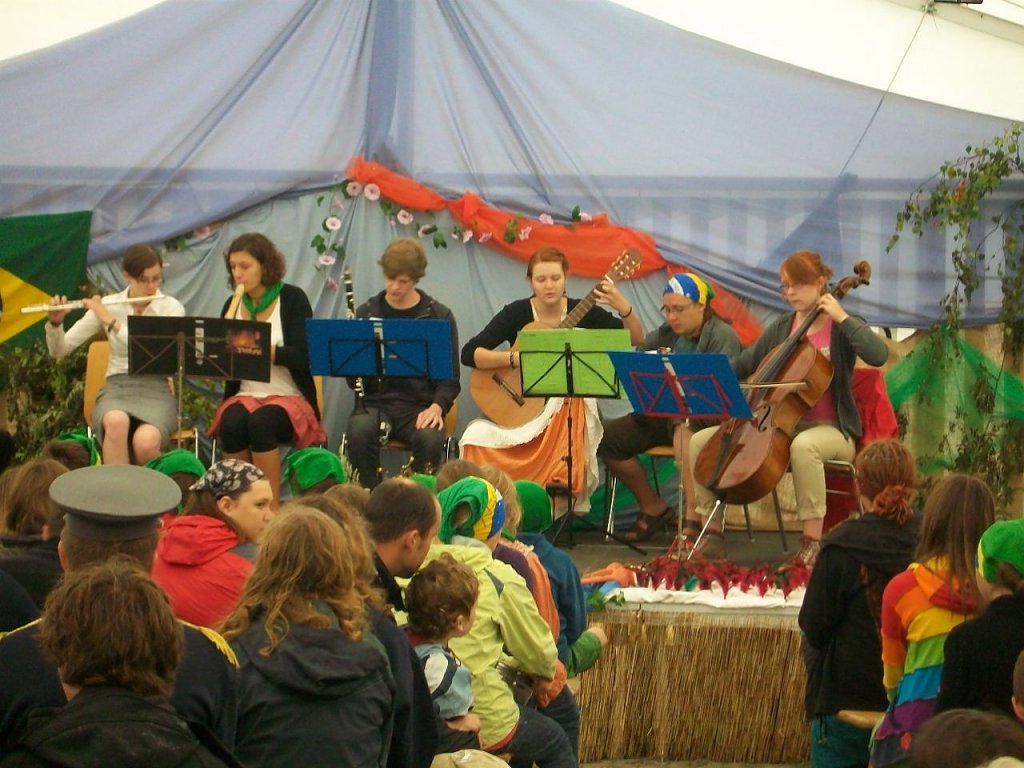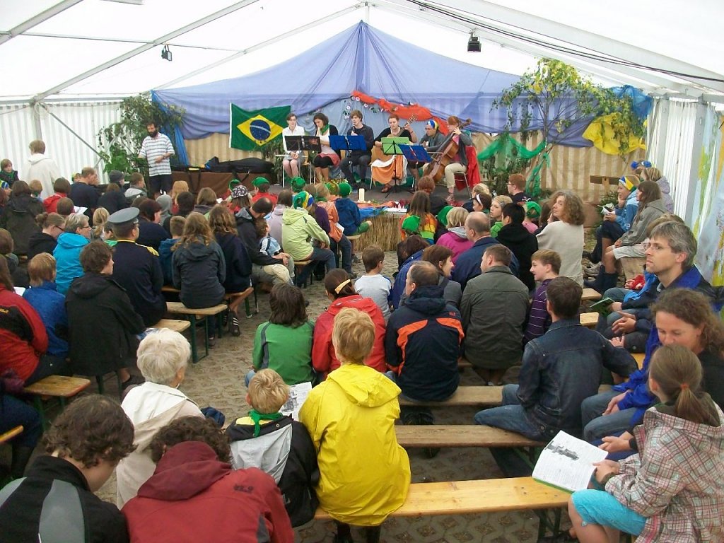 Pünktlich um 10:00 Uhr beginnt dann der Abschlussgottesdienst. Dabei kommt auch Dom Helder Camara zu Wort. Die Hauptrollen des Theaterstücks der vergangenen Woche werden noch einmal vorgestellt und so erfahren die Eltern etwas über Brasilien und die unterschiedlichsten Erlebnisse der Kinder der vergangenen Woche. Auch wenn die anschließende Verabschiedung nicht immer einfach ist, vielleicht sieht man sich ja im nächsten Jahr wieder.
