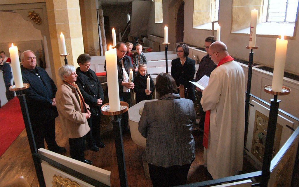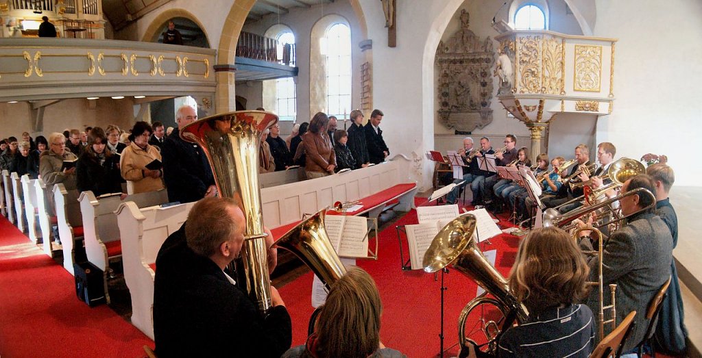 Die große Gemeinde, die aus der ganzen Umgebung gekommen war stimmte aus voller Kehle in die bekannten Choräle ein: "Ein feste Burg ist unser Gott", "Allein Gott in der Höh sei Ehr", "Nun freut euch, lieben Christen gmein" "Schmücke dich, du liebe Seele"," Nun danket alle Gott". u.a. Weitere Höhepunkte waren eine Paten-Nachberufung und die Feier des Heiligen Abendmahles.