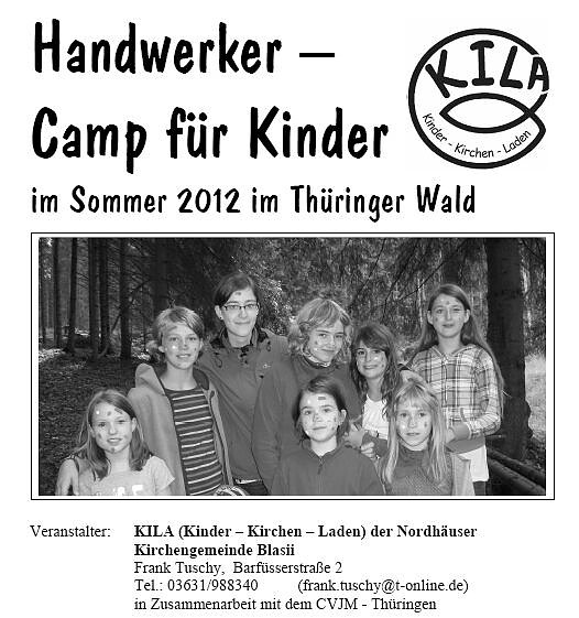 Ab sofort können Kinder im Alter von 8-12 Jahren im KILA für die Teilnahme am Handwerkercamp in den Sommerferien angemeldet werden. Das Camp findet vom 4. – 12. August statt und Veranstaltungsort ist wie immer das idyllische Bergdörfchen Hoheneiche im Thüringer Wald.