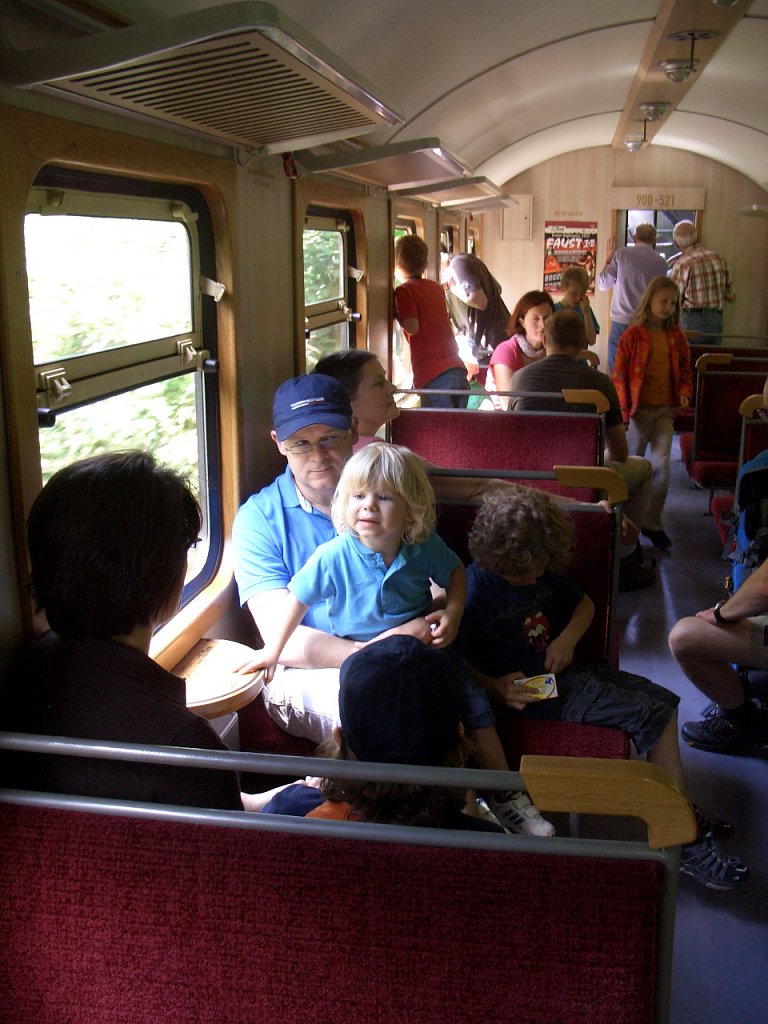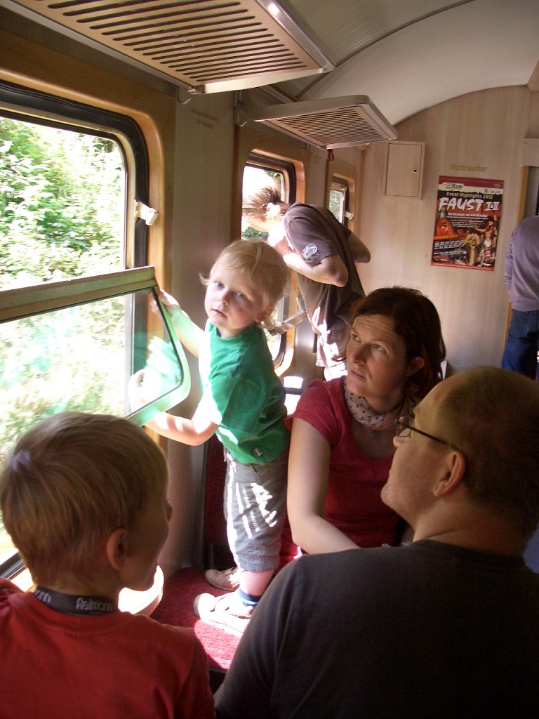 Wir sind wieder da aus dem Harz, trotz vereinzelter Unkenrufe im Vorfeld, sie ist doch möglich die gemeinsame Familienfreizeit am Frauenberg. Bei strahlend blauen Himmel trafen sich mehrere Familien und viele Kinder am Bahnhof Eisfelder Talmühle um mit der Dampflock Richtung Sophienhof zu fahren. Die Fensterplätze waren sehr begehrt und die eine oder andere Nase wurde aus dem Fenster oder auf der Plattform in den Fahrtwind gehalten, eine Fahrt mit er HSB ist immer wieder ein Erlebnis für groß und klein. Der schwarze stählenden Kollos und der daraus entweichende weiß-schwarze Rauch faszinierte die Kinder sehr und viele Augen schauten nach dem Aussteigen dem Zug und vor allen der mächtigen Rauchwolke hinterher. Dann ging es Berg auf, mächtig Berg auf und die vielen kleinen Beine hatten jede Menge Mühe den Aufstieg zu bezwingen, aber zur Not gab es ja noch die Eltern. Ober angekommen ging es auf dem direkten Weg zur Ziegenalm, Tiere füttern und streicheln, glückliche Augen auf beiden Seiten des Zaunes. Noch ein paar Meter hin und es gab auf dem Grillplatz in Sophienhof Kuchen und andere leckere Sachen, vielen Dank an die fleißige Nachtbäckerin. Enge Wege geheimnisvollen Täler und steile Schluchten führten uns in Richtung eines reißenden Bergflusses in dem unter sach-und fachmännischer Leitung unseres Pfarrers Friedemann Büttner der eine oder andere gefährliche und kapitale Holzfisch geangelt wurde, die Kleinen spielten und bei den Großen ergab sich das eine oder andere gute Gespräch und endlich gab es einmal die Gelegenheit die Menschen unserer Gemeinde etwas persönlich kennen zu lernen. Weiter ging es Berg ab, die Füße wurden immer schwerer und alle waren froh als wir den Bahnhof Rabensteiner Stollen erreichten, hier trennten sich unsere Wege, viel Umarmungen folgten nach diesen guten Miteinander, ein Teil begab sich auf die Odyssee der Suche nach dem Auto ( wo hab ich es den abgestellt, schwierig, schwierig, in der wilden Natur ) , aber davon muss jemand anderes berichten, ich und mein Junge liefen weiter Richtung Ilfeld. Als wir am Abend gemeinsam im Bett lagen, sagte er zur mir kurz bevor er seine Augen zu machte -Papa das war ein wirklich schöner Tag, können wir das nicht wieder einmal machen-.......Ich kann nur eins dazu sagen, allen Verantwortlichen, allen Organisatoren im Verborgenen, Ja bitte lasst uns das noch einmal machen, es war ein wirklich guter Tag,