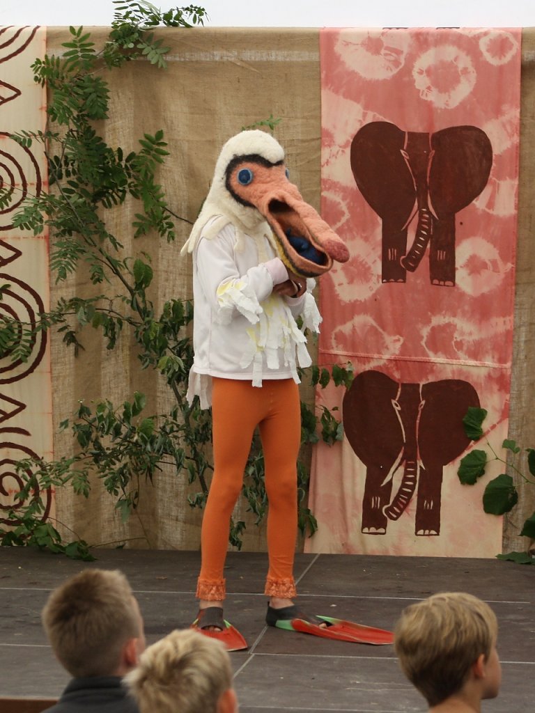 Rhythmische Trommelklänge, afrikanischen Tänze und Gesänge laden zu den Dschungelwettkämpfen ein. Unser Medizinmann N´komo schwingt geheimnisvoll seinen Zaubermopp und weiht alle Stammesbrüder in die Regeln der Wettkämpfe ein. Körperbeherrschung und Geschicklichkeit werden gebraucht, um Kokosnüsse zu balancieren; gute Standfestigkeit, um nicht umgefegt zu werden und festen Zusammenhalt, um das Ziel gemeinsam zu erreichen. All das ist nötig, um mit vereinten Kräften Leopardenmenschen zu fangen und dann die tollen Ergebnisse beim Melonenschweinefestmahl zu feiern.