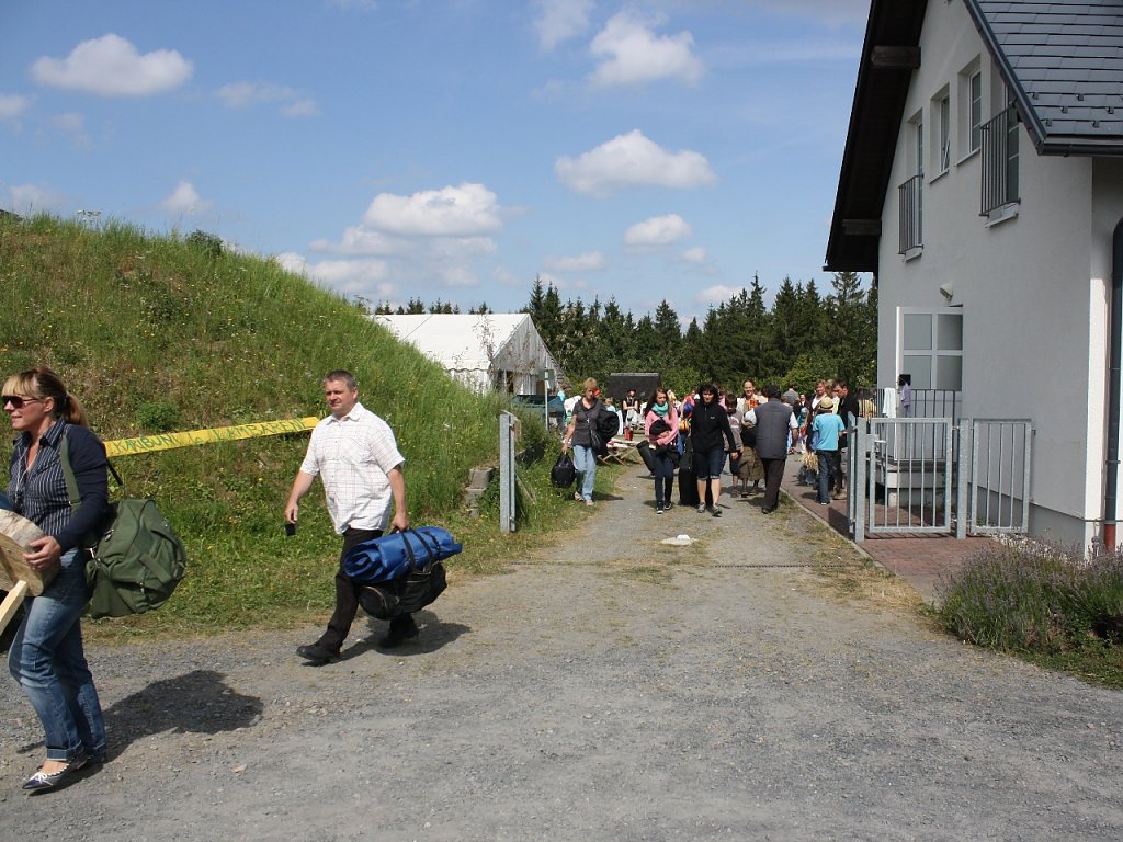 Anschließend kehrt Ruhe ein. Kinder und Eltern verabschieden sich von ihren Zeltbetreuern. Dabei ist es oft mehr Gepäck, als bei der Anreise: Ergebnisse der Handwerke und auch neue Gedanken im Herzen machen sich auf den Weg wieder nach Hause; vielleicht schon mit der Vorfreude auf den nächsten Sommer!