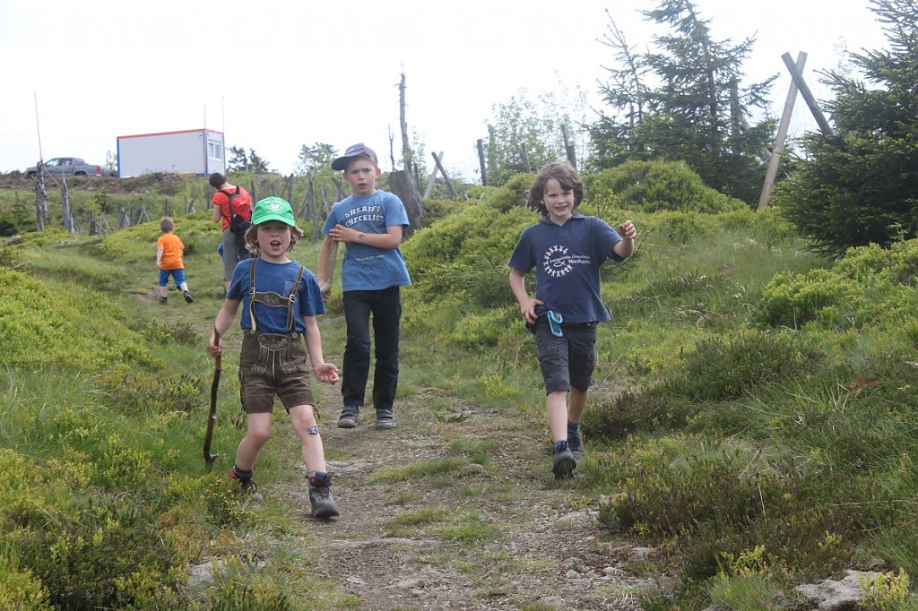 -das ist der Brocken, da war ich auch schon...-, also nix besonderes für so heldenhafte Entdecker wie Ihn, für mich aber immer wieder Grund zum Staunen über die Schönheit dessen, was uns geschenkt wurde, der letzte Anstieg entlang des Loipenweges, benannt im Bezug auf die Spur der tollkühnen Helden, die im Winter mit Brettern an den Schuhen sich den Weg in diesen wilden Natur bahnen, belohnte Alle, auch den kleinen Entdecker Johannes mit den sagenhaften Ausblick über die Weiten des Harzes, oben angekommen, wurden als Beweis für den heldenhaften Aufstieg der kleinen Helden Münzen geprägt, damit sie auch in vielen Jahren Ihren Nachfahren von diesen Tag berichten können, ein kleiner sportlicher und kämpferischer Wettstreit in der Arena (Spielplatz) folgte, an dieser Stelle sei der heldenhafte Einsatz des Medicus bei der Versorgung aller großen und kleinen Verletzungen die bei solch einen gefährlichen Aufstieg immer entstehen, erwähnt, sowie tausendfachen Dank für die Großherzigkeit bei der Versorgung mit Getränken an den Fährtenleser.