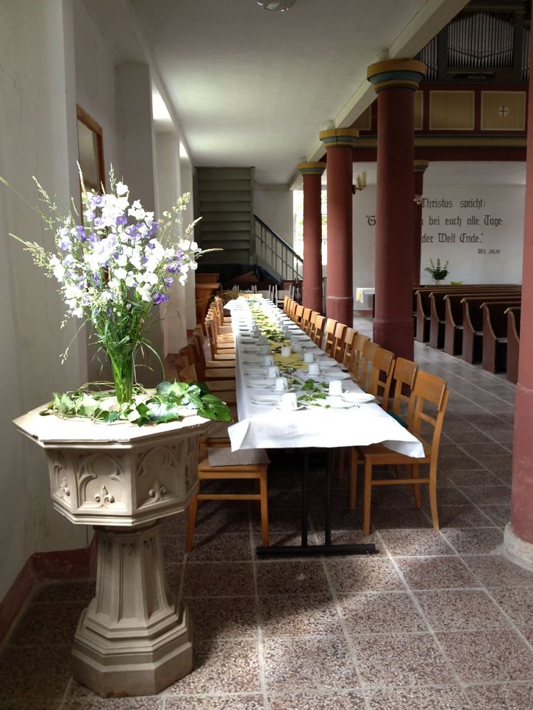 Weiterhin wurde den Firmen und Ehrenamtlichen gedankt, die sich beim Neubau des Gemeinderaums engagiert haben.