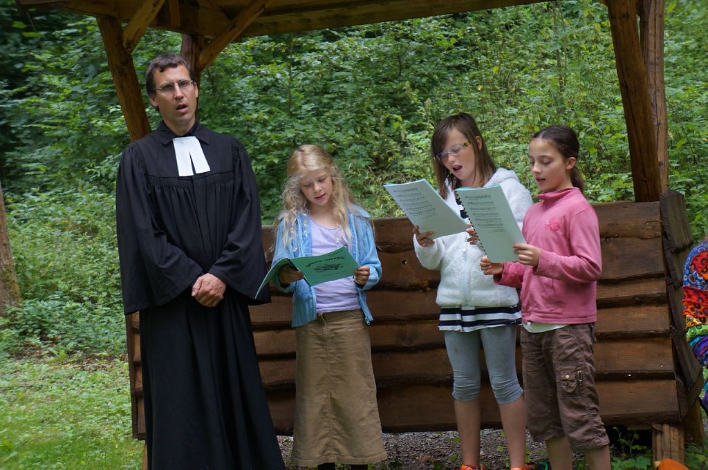 Kirchen werden von Menschen gabut. Am Sonntag aber fand in Ilfeld der Gottesdienst in einem von Gott gebauten Dom statt. Denn der Berg auf der einen Seite und die Bäume auf der anderen bildeten die Mauern, der Himmel das Dach.