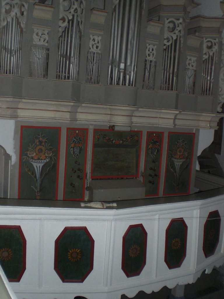 Nun gehen die Arbeiten in der Halberstädter Werkstatt weiter. Inzwischen müssen das Gehäuse und der Prospekt repariert und restauriert werden.