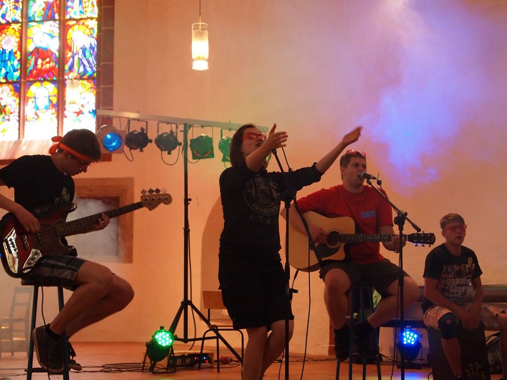 Beim Abschluss in der Kirche war die Stimmung entsprechend aufgeheizt, doch die Band fing die Schüler mit ihren Songs wieder ein und bewegte alle noch einmal zum Mitrocken. Die Blasii-Kirche hat sich vielleicht insgeheim geschüttelt, bei solch imposantem Lärm aus so vielen Kehlen. Doch von oben, ist das Projekt sicherlich mit einem Schmunzeln beobachtet worden. Die Kinder jedenfalls stiegen begeistert in ihre Busse und die zahlreichen Helfer machten sich erschöpft, aber glücklich, auf den Heimweg. Eine Aktion, die nach Wiederholung ruft.