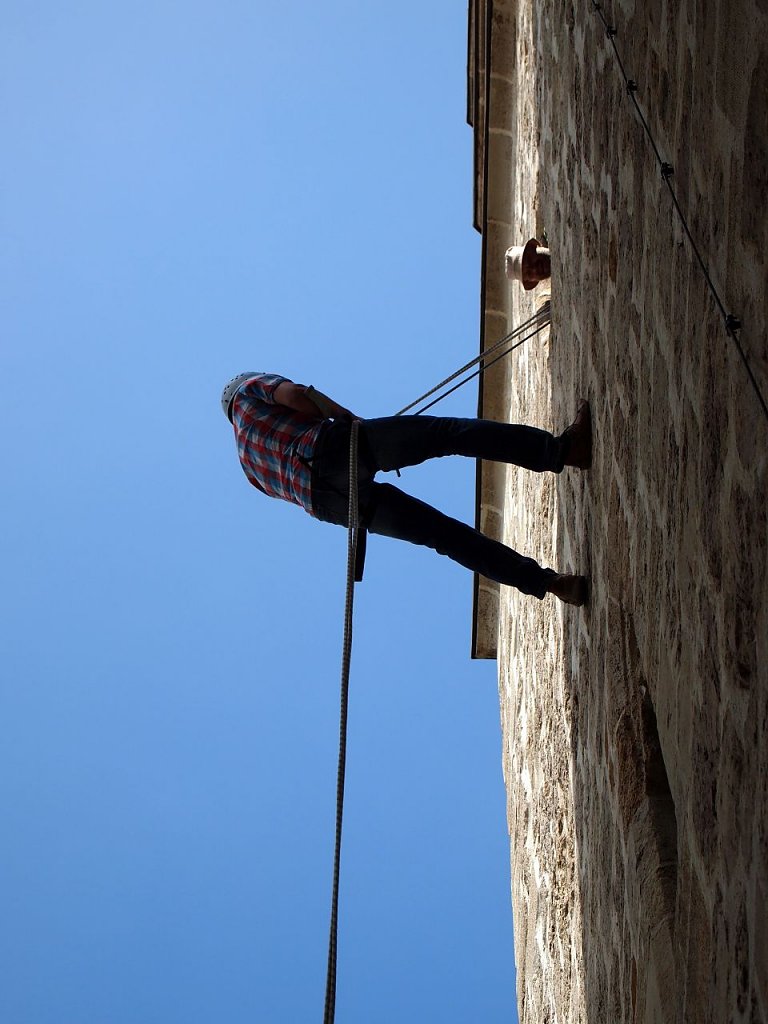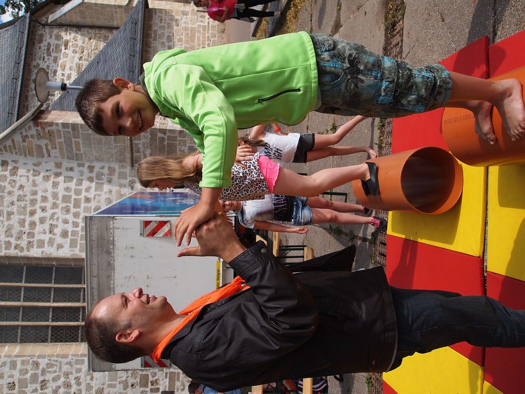 Nach diesen informativen anderthalb Stunden hieß es für die Schüler Kraft an der Obstbar vor der Blasii-Kirche tanken und auf zum Markt der Möglichkeiten rund um die Kirche. Da wurde Sumo-gerungen, sich vom Turm abgeseilt, ein Blasinstrument ausprobiert, mit dem Zirkus Zapellini balanciert, Ringe geschmiedet, Körbe geflochten, Wasserbomben geschossen und vieles, vieles mehr. 24 Angebote lockten zum Mitmachen und wurden gern angenommen.