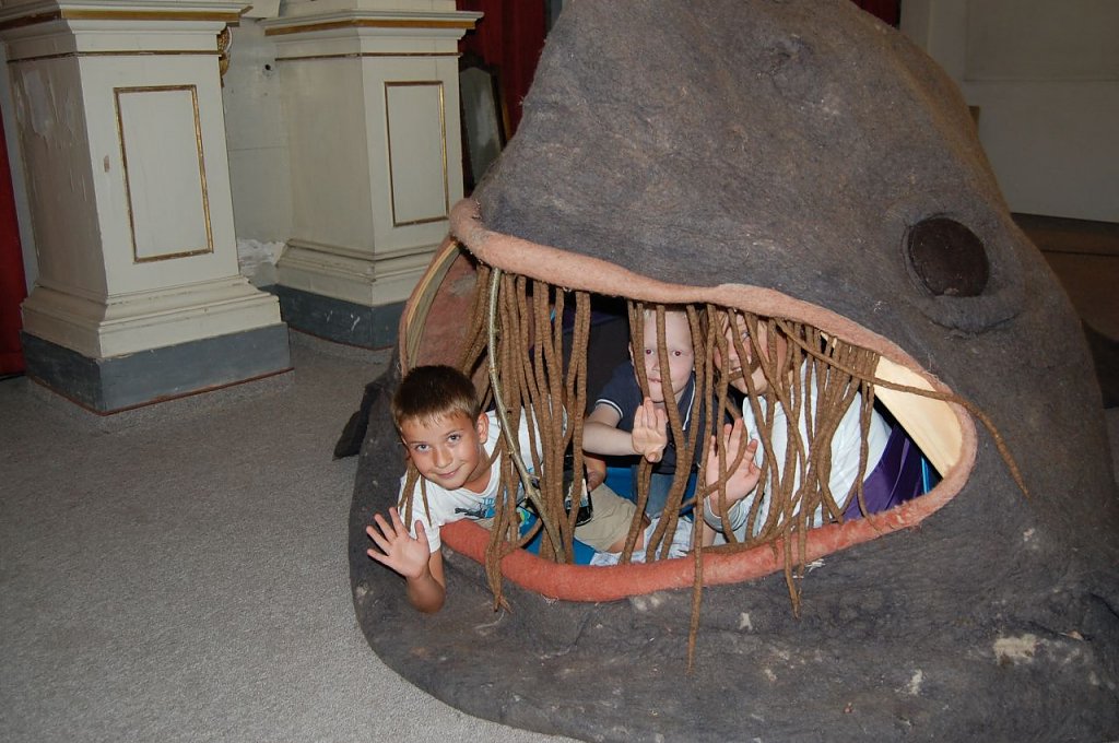 Sonne pur lockte viele Kinder und Familien in und um die Heringer Kirche! Schließlich war "Wal-Sonntag" ! Kinder aus Heringen, Windehausen, Auleben, Hamma und Urbach sangen, rappten und spielten die Geschichte von Jona, der erst verschluckt und dann ausgespuckt wurde. Der riesige , handgefilzte Wal sorgte für das passende Ambiente! Wem wurde da nicht klar, dass Gott sogar im Fischbauch allgegenwärtig ist?! Am Ende bewegte ER Jona doch noch , seinen Auftrag zu erfüllen und die Leute von Ninive zur Umkehr zu bringen.