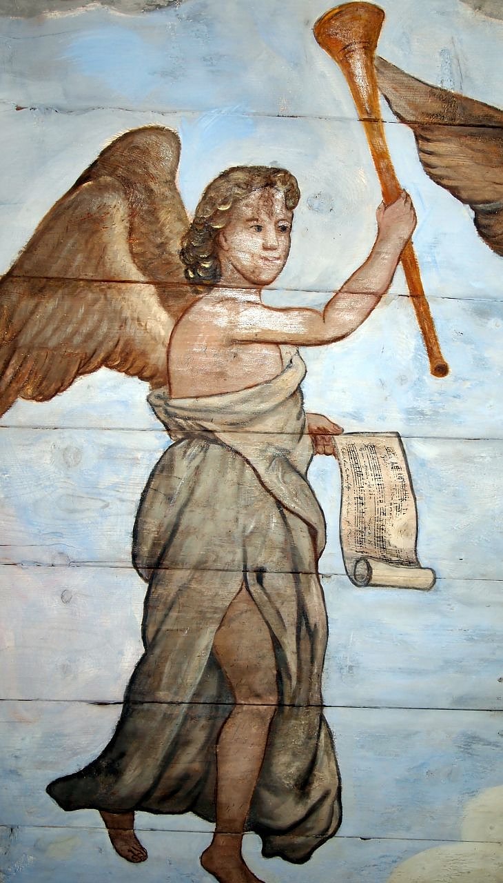 an der Decke so mancher Kirche schweben Engel zwischen Himmel und Erde. Auch in der Kirche St. Nicolai zu Bösenrode ist das so. Der eine hält ein Notenblatt.