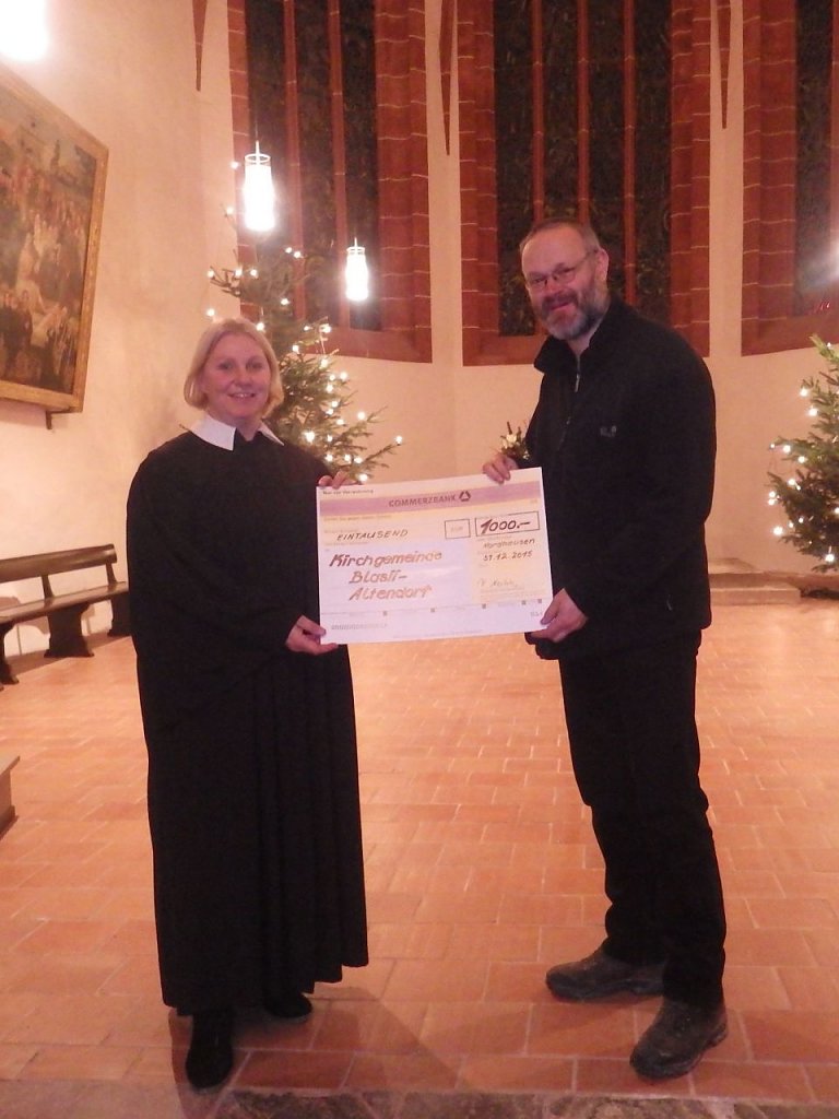 Das über 750 Jahre alte Kirchengebäude gehört zum Stadtbild selbstverständlich dazu und eine Instandhaltung der größten evangelischen Kirche der Stadt Nordhausen ist aufwendig und mit Kosten verbunden. Gerade in der Vorweihnachtszeit zeigte sich, dass auch zahlreiche ehemalige Nordhäuser Interesse an der Unterstützung des Fördervereins haben. Durch Mitgliedsbeiträge und Spenden sind im vergangenen Jahr über 1000 Euro zusammen gekommen. Dieses Geld konnte am letzten Gottesdienst zum Silvesterabend der Kirchengemeinde übergeben werden.