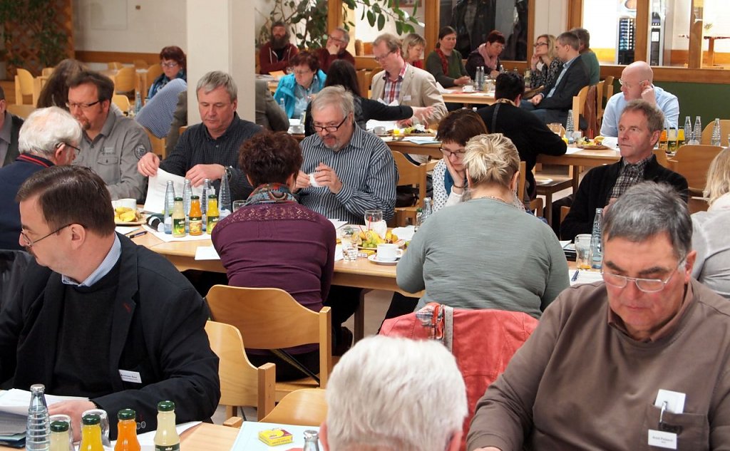 In den vielen Gesprächen zum Stellenplan im Kirchenkreis wurden bereits Ideen zur Gemeinde der Zukunft, angedacht. Doch schnell stand die Frage im Raum: Sind diese Visionen rechtlich umsetzbar oder bremst das Kirchengesetz vielleicht Neues mit alten Fesseln? Antwort konnte Oberkonsistorialrat Andreas Haerter, Leiter des Referats Gemeinderecht und Kirchenmusik im Erfurter Landeskirchenamt, geben. Seine Antwort lautete oftmals: Vieles ist bereits möglich, die Frage ist meist eher die Praktikabilität. Haerter antwortete beispielsweise auf eine konkrete Frage, dass eine Gemeinde ihren Pfarrer zu 50% anstellen und ihm eine andere berufliche Nebentätigkeit von weiteren 50% genehmigen kann. Wird die Gemeinde aber damit zurecht kommen, wenn der Pfarrer nicht immer ansprechbar ist? Wenn auch einmal der andere Beruf Vorrang haben muss? Möchte ein Pfarrer mit der finanziellen Unsicherheit und der geringeren Pension leben?