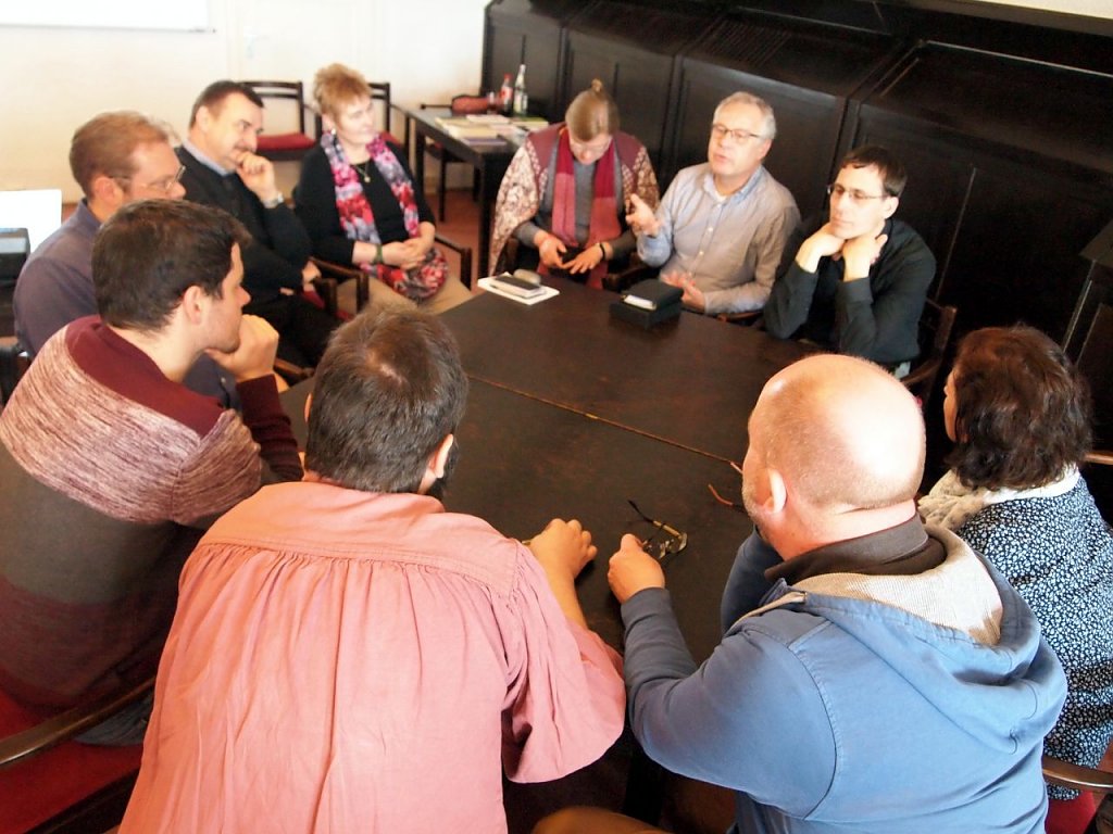 Und bereits am nächsten Morgen wurde weiter diskutiert. Dieses mal stand das Verhältnis Pfarramt und Verwaltungsamt zur Diskussion. An welcher Stelle kann wer, wem die Arbeit erleichtern? Wo kann das Amt Pfarrern und Gemeindebüros Verwaltung abnehmen, wo ist aber auch manches im Pfarrbüro zu leisten, um die Arbeit im Amt zu optimieren. Themen wie Friedhofsverwaltung, Meldewesen, Leistungen des Amtes bei Baumaßnahmen und die Sammlung von Kollekten standen im Mittelpunkt. Und es zeigte sich erneut, dass solche Gespräche, für die im Alltag keine Zeit ist, sehr fruchtbar sind.