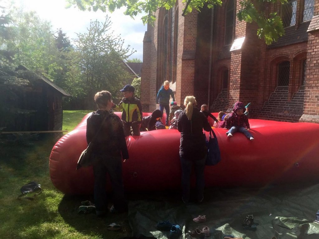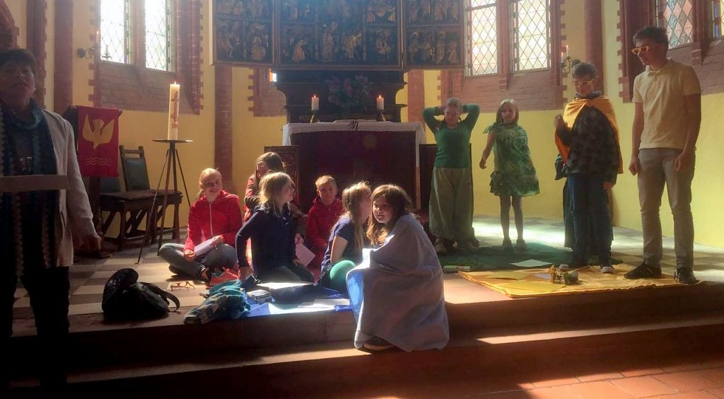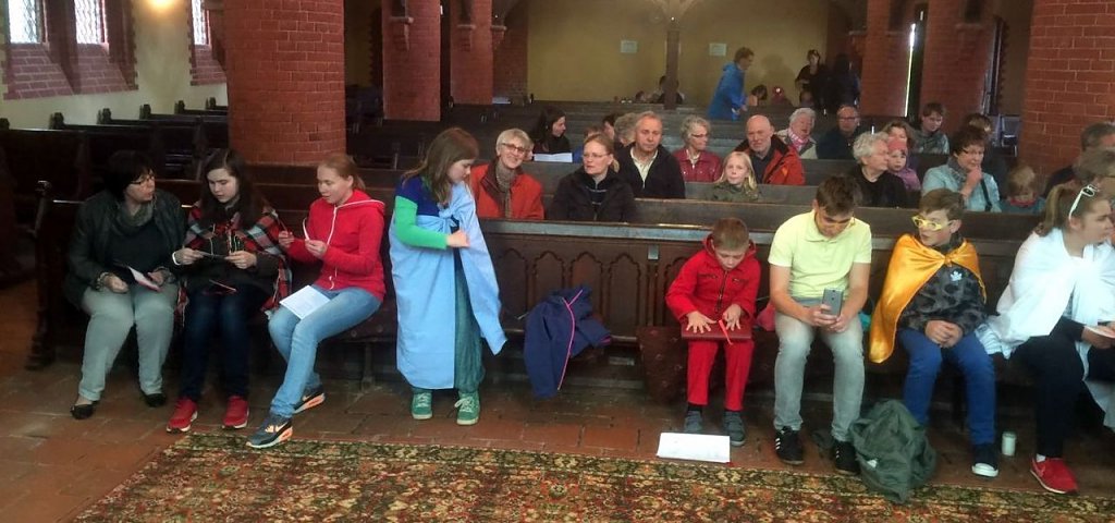 Im Gottesdienst zeigten zahlreiche Kinder und Jugendliche das Anspiel "Das Viertelland". Die Spannung war wohl bei Darstellern und den in den Bänken wartenden Familienmitgliedern gleich hoch. Überall reckten sich schon während der Vorbereitungen neugierig die Hälse.